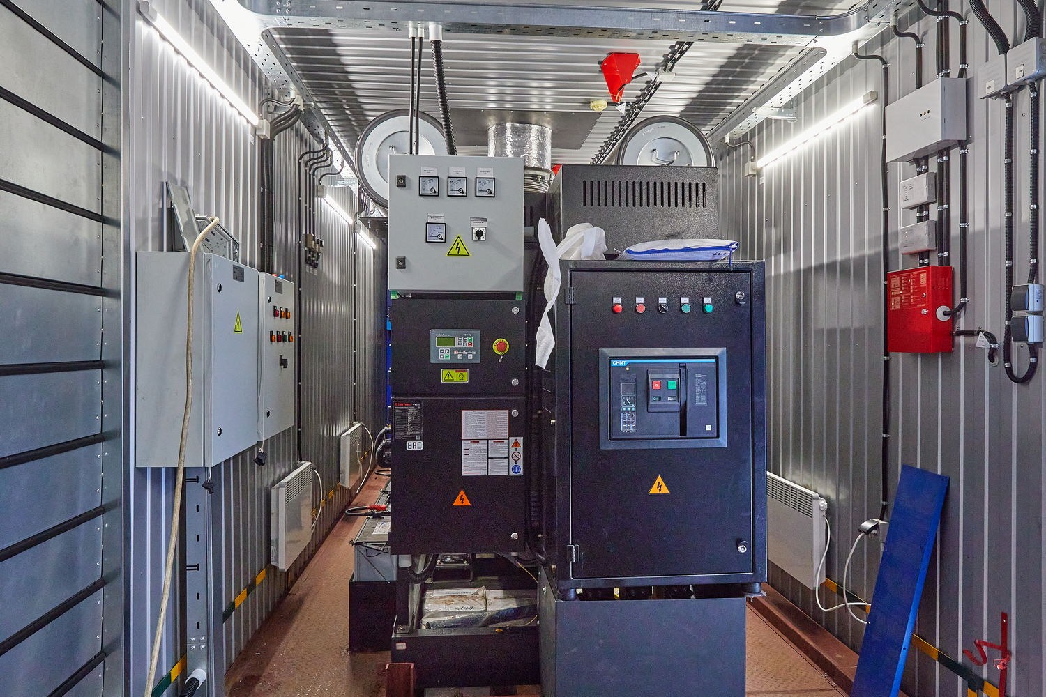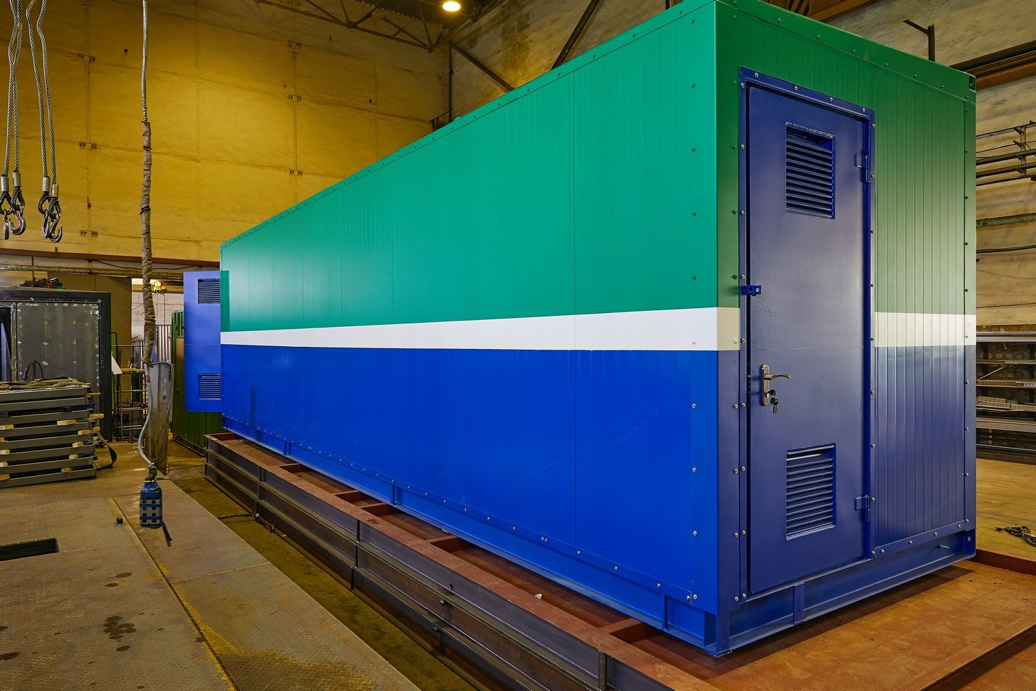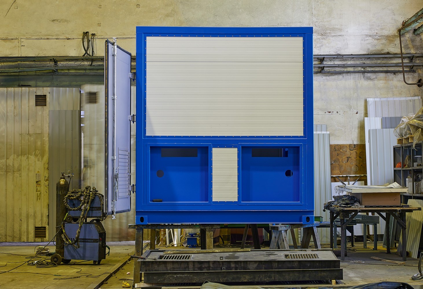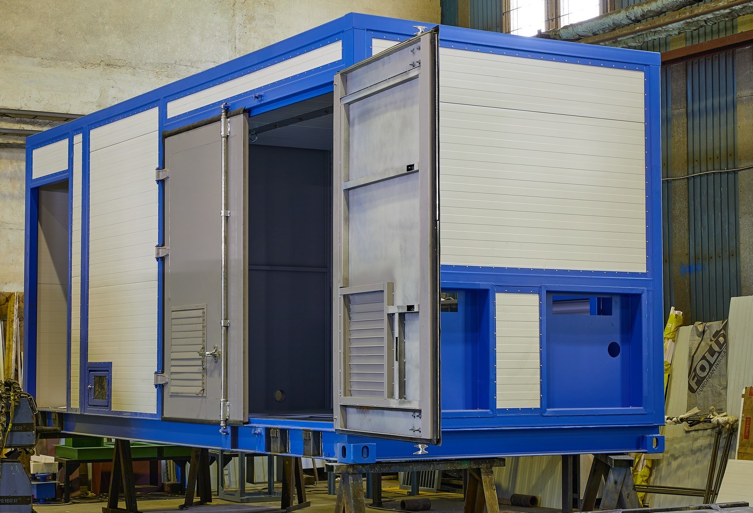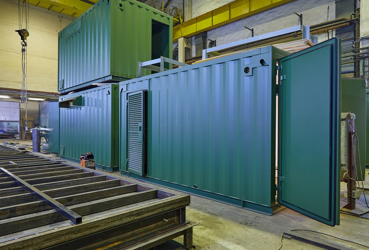 Два блок-контейнера были изготовлены в июле 2022 года на производстве «Техэкспо». Один блок контейнер металлический с габаритами 6000х2400х2800 мм в нем размещена ДГУ на 600 кВт, второй с габаритами 5000х2400х2600 мм и ДГУ на 400 кВт. Оба контейнера оснащены системами вентиляции, отопления, основного и аварийного освещения, ЩСН, системой пожарно-охранной сигнализации и автоматического аэрозольного пожаротушения. Предусмотрены петли для верхней строповки.