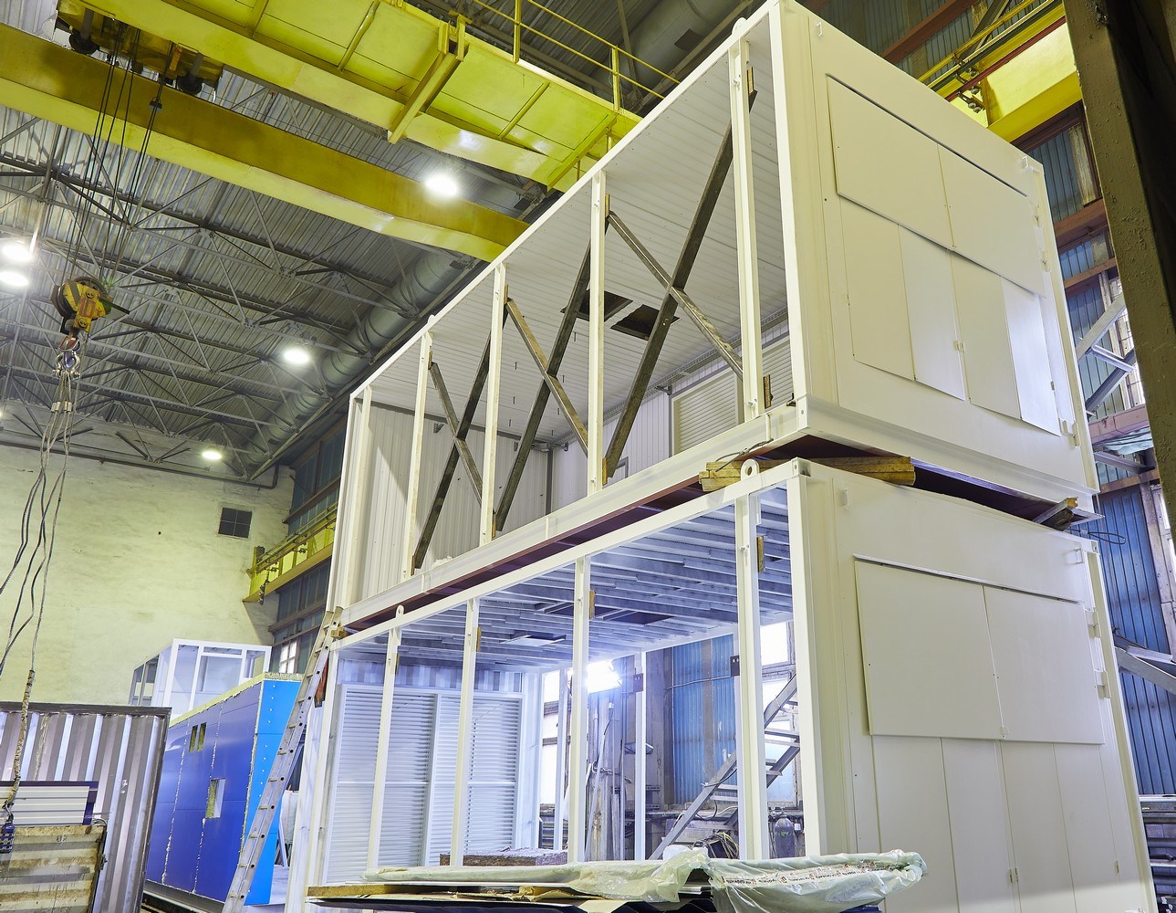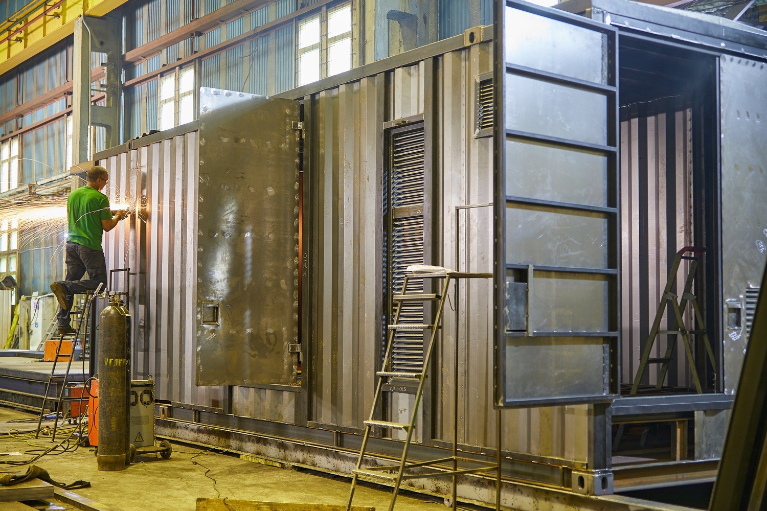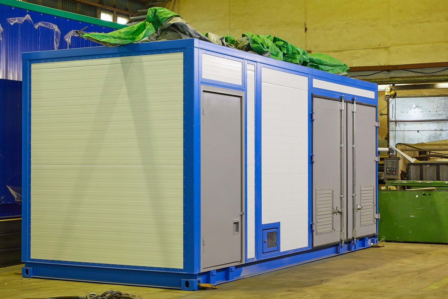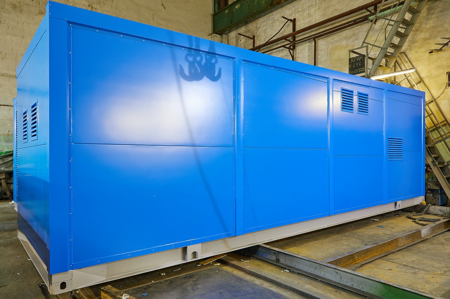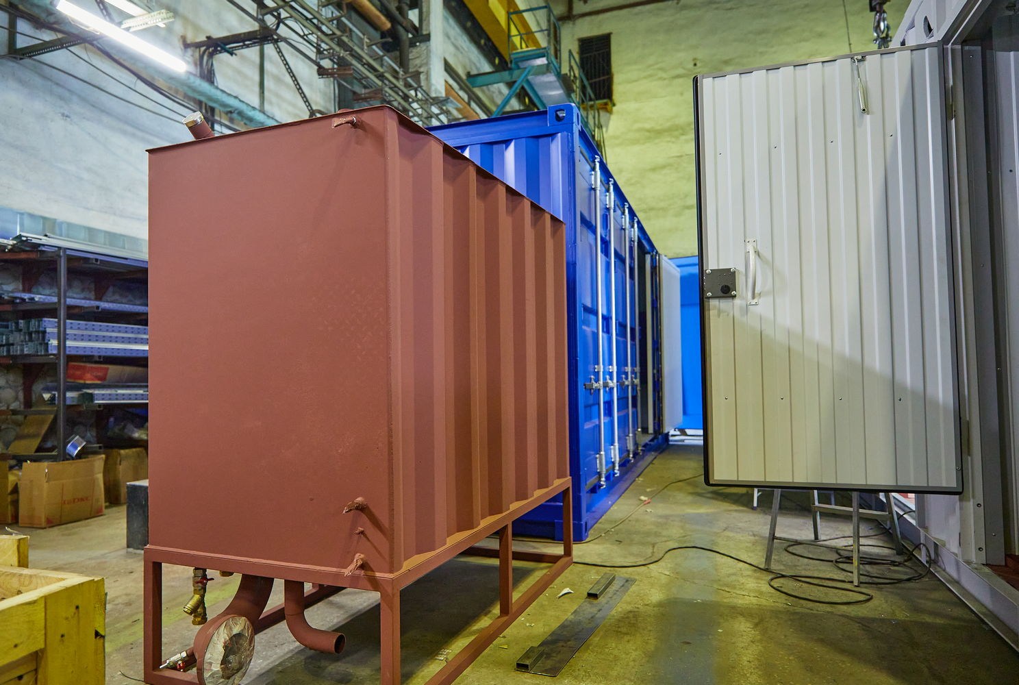 Два блок-контейнера были изготовлены в июле 2022 года на производстве «Техэкспо». Один блок контейнер металлический с габаритами 6000х2400х2800 мм в нем размещена ДГУ на 600 кВт, второй с габаритами 5000х2400х2600 мм и ДГУ на 400 кВт. Оба контейнера оснащены системами вентиляции, отопления, основного и аварийного освещения, ЩСН, системой пожарно-охранной сигнализации и автоматического аэрозольного пожаротушения. Предусмотрены петли для верхней строповки.
