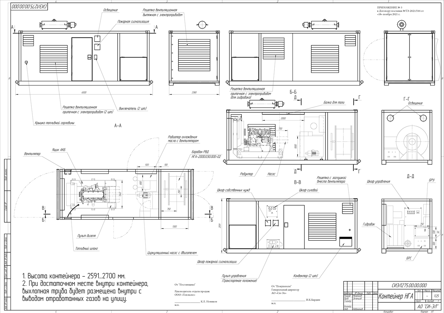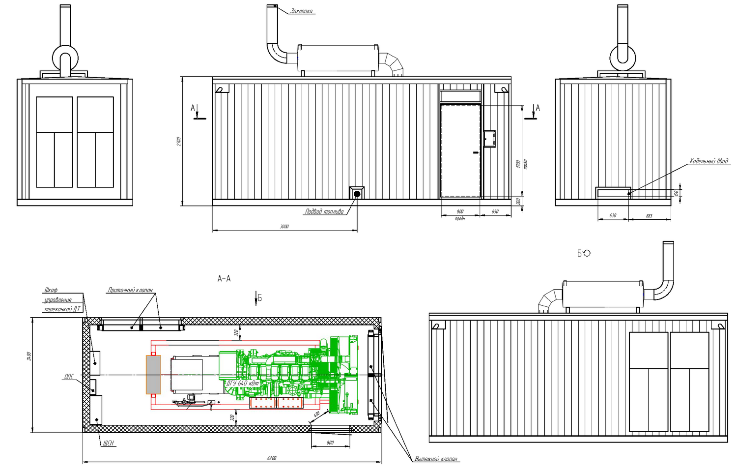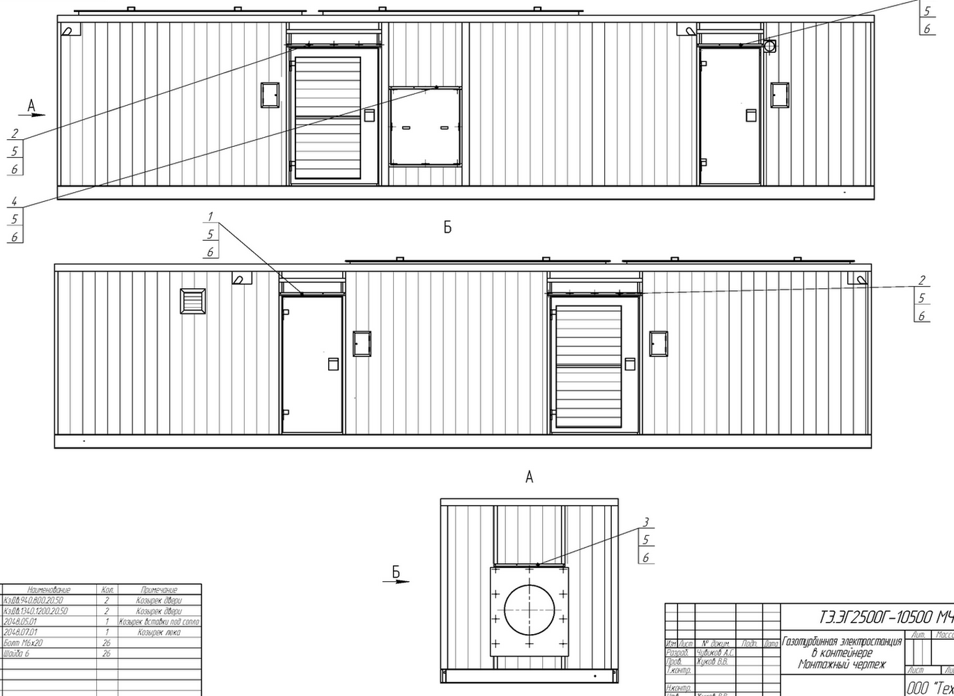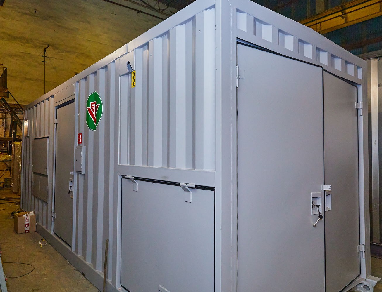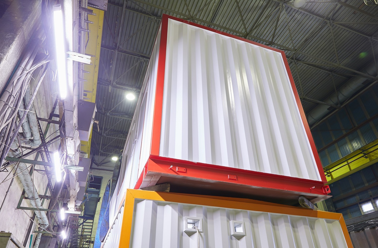 Два блок-контейнера были изготовлены в июле 2022 года на производстве «Техэкспо». Один блок контейнер металлический с габаритами 6000х2400х2800 мм в нем размещена ДГУ на 600 кВт, второй с габаритами 5000х2400х2600 мм и ДГУ на 400 кВт. Оба контейнера оснащены системами вентиляции, отопления, основного и аварийного освещения, ЩСН, системой пожарно-охранной сигнализации и автоматического аэрозольного пожаротушения. Предусмотрены петли для верхней строповки.