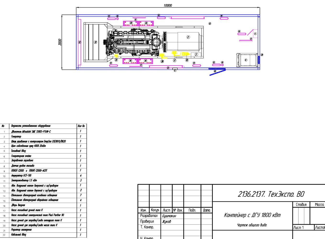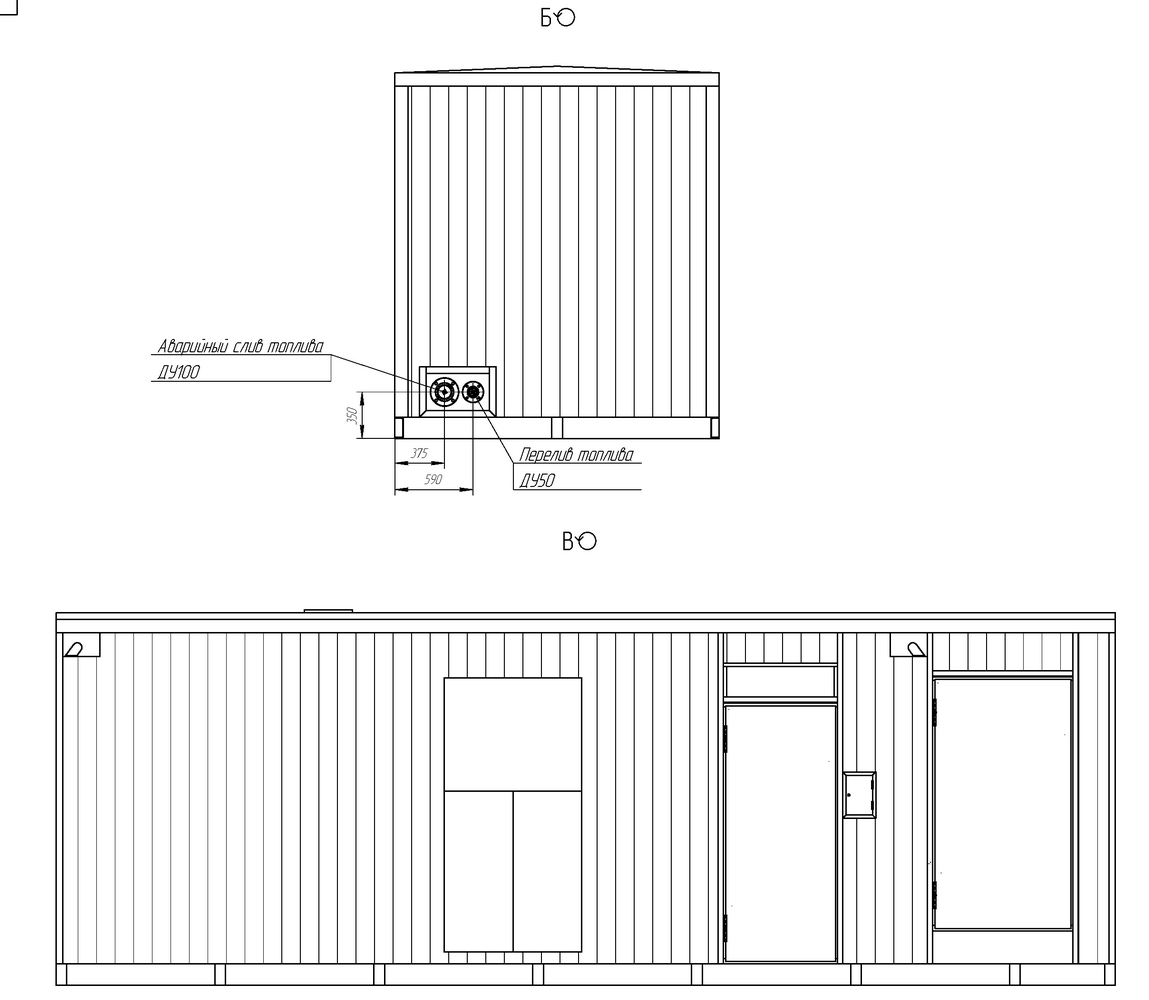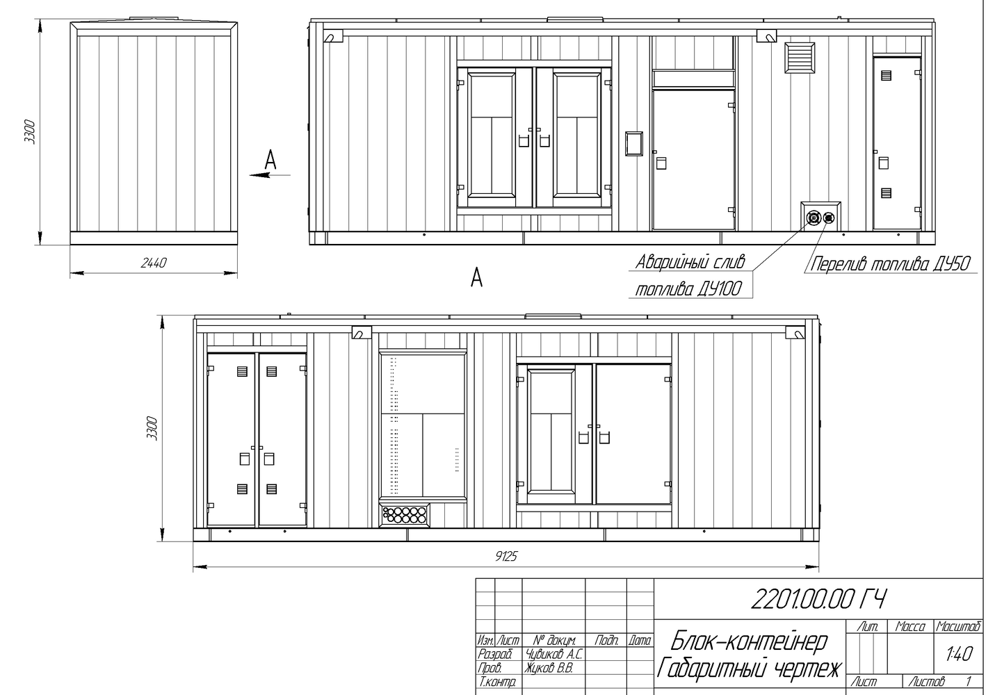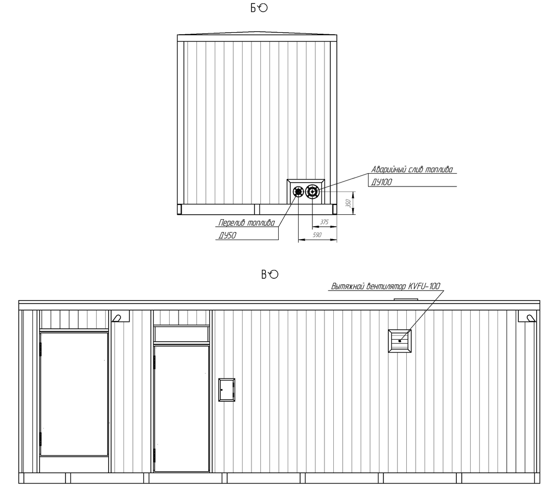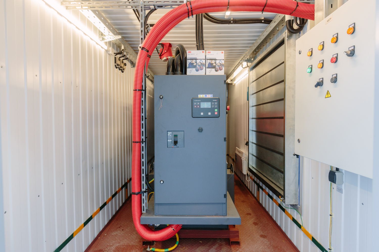 Два блок-контейнера были изготовлены в июле 2022 года на производстве «Техэкспо». Один блок контейнер металлический с габаритами 6000х2400х2800 мм в нем размещена ДГУ на 600 кВт, второй с габаритами 5000х2400х2600 мм и ДГУ на 400 кВт. Оба контейнера оснащены системами вентиляции, отопления, основного и аварийного освещения, ЩСН, системой пожарно-охранной сигнализации и автоматического аэрозольного пожаротушения. Предусмотрены петли для верхней строповки.