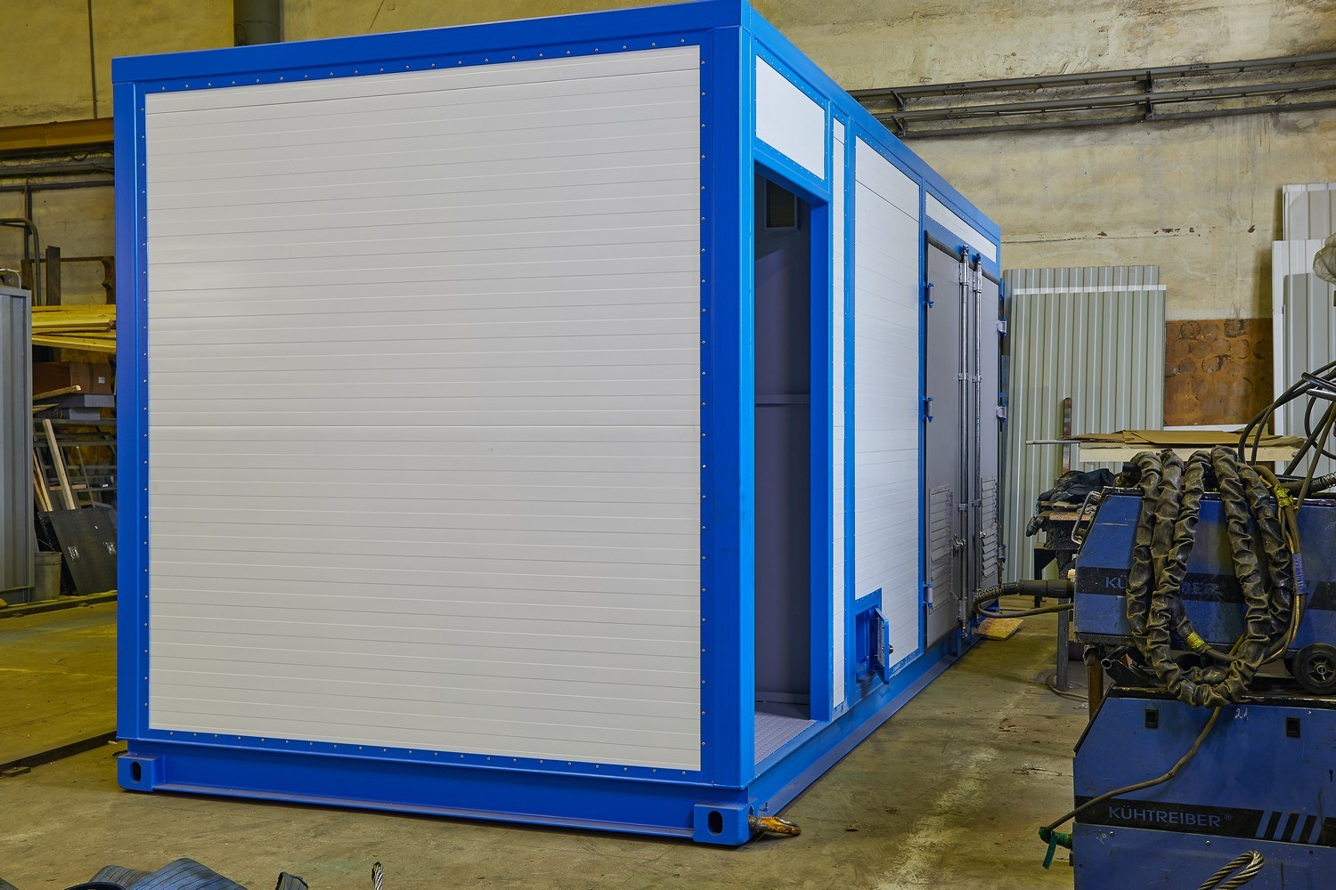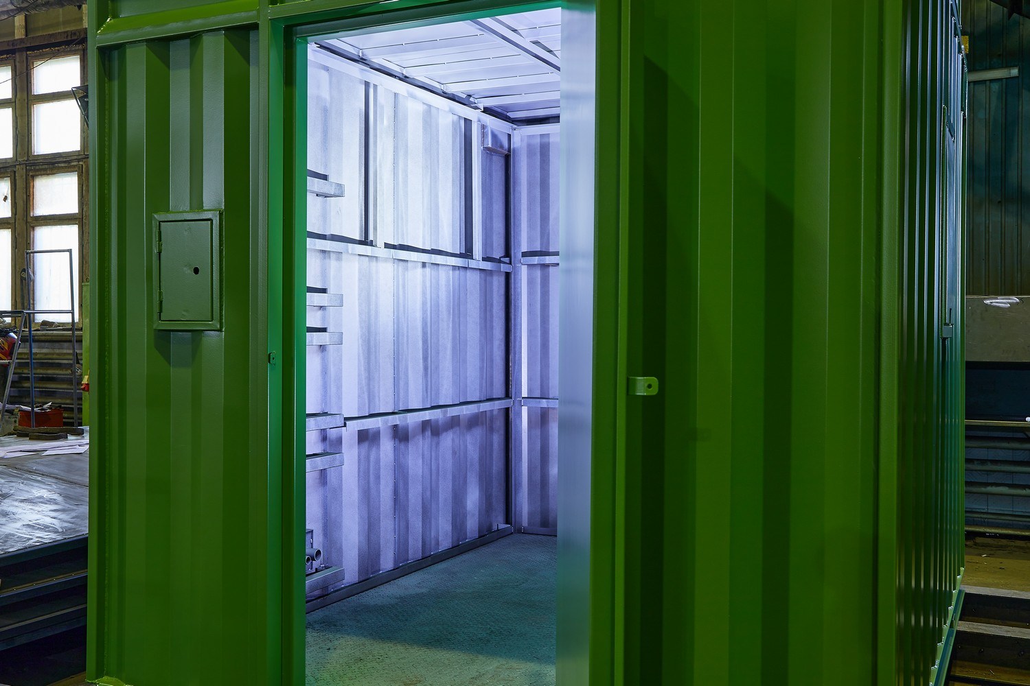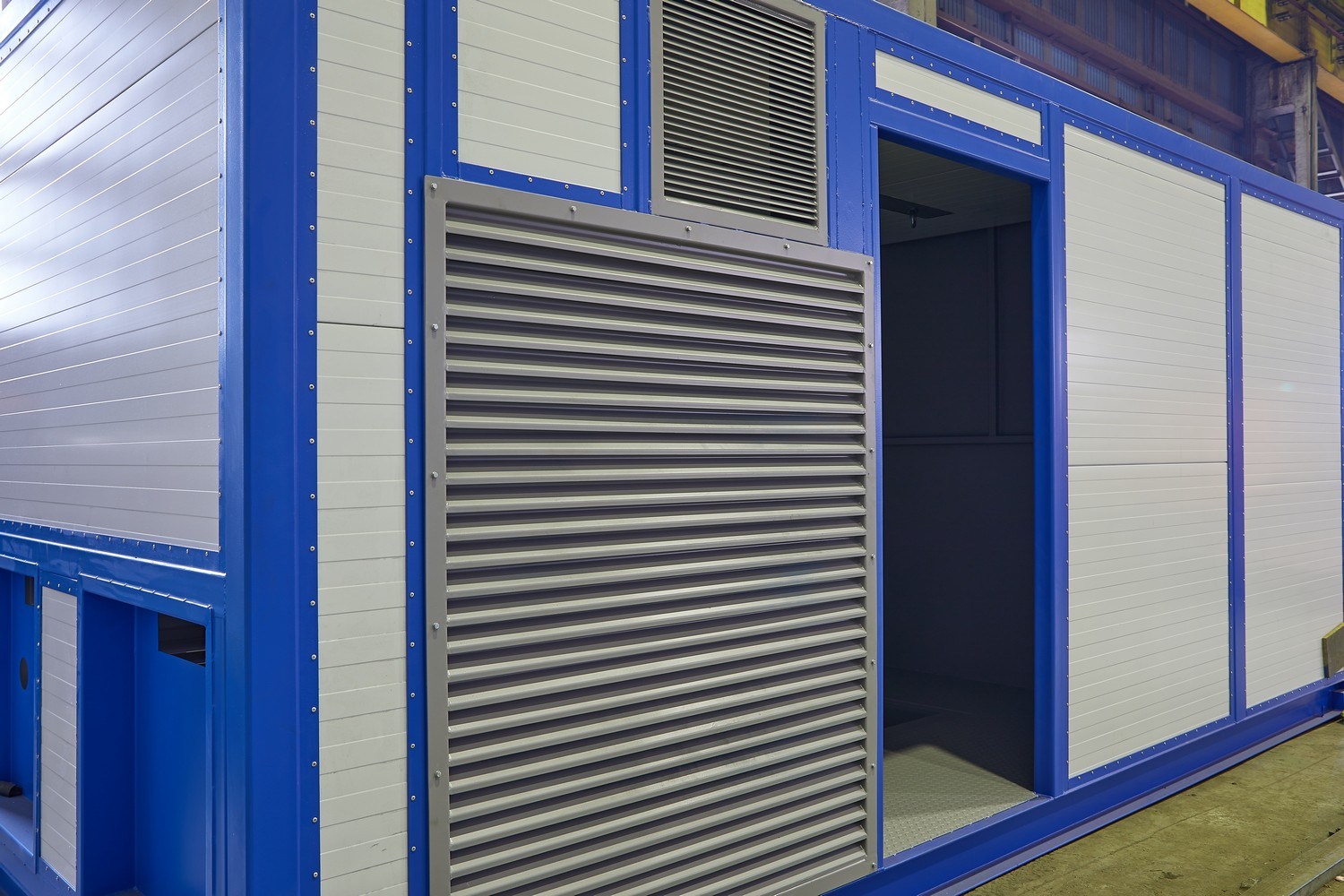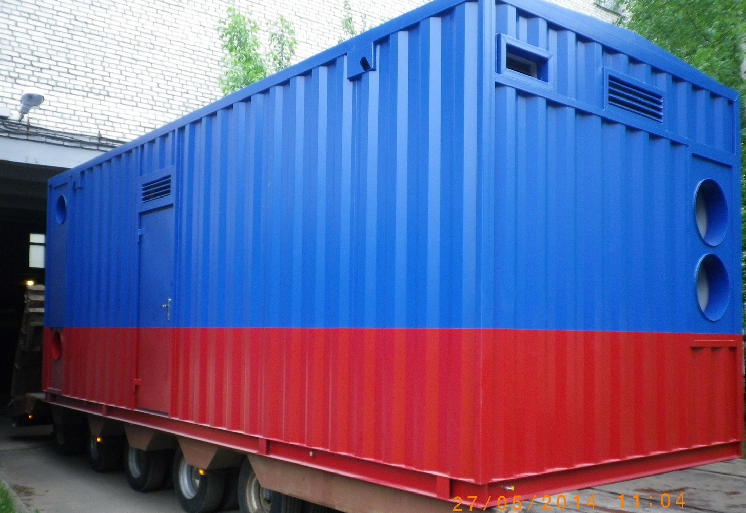 Подготовленность конструкции к последующему утеплению и отделке отличает наши контейнеры от «морских». Контейнер имеет негорючую теплоизоляцию и рассчитан для работы в диапазоне температур окружающего воздуха от - 50 до +50 град.С. Технологический проем для монтажа и демонтажа основного оборудования - в торцевой стене контейнера, совмещенной с выпускным клапаном. Вентиляционные люки с установленными в них жалюзийными решётками и крышками над ними с наружной стороны контейнера.
