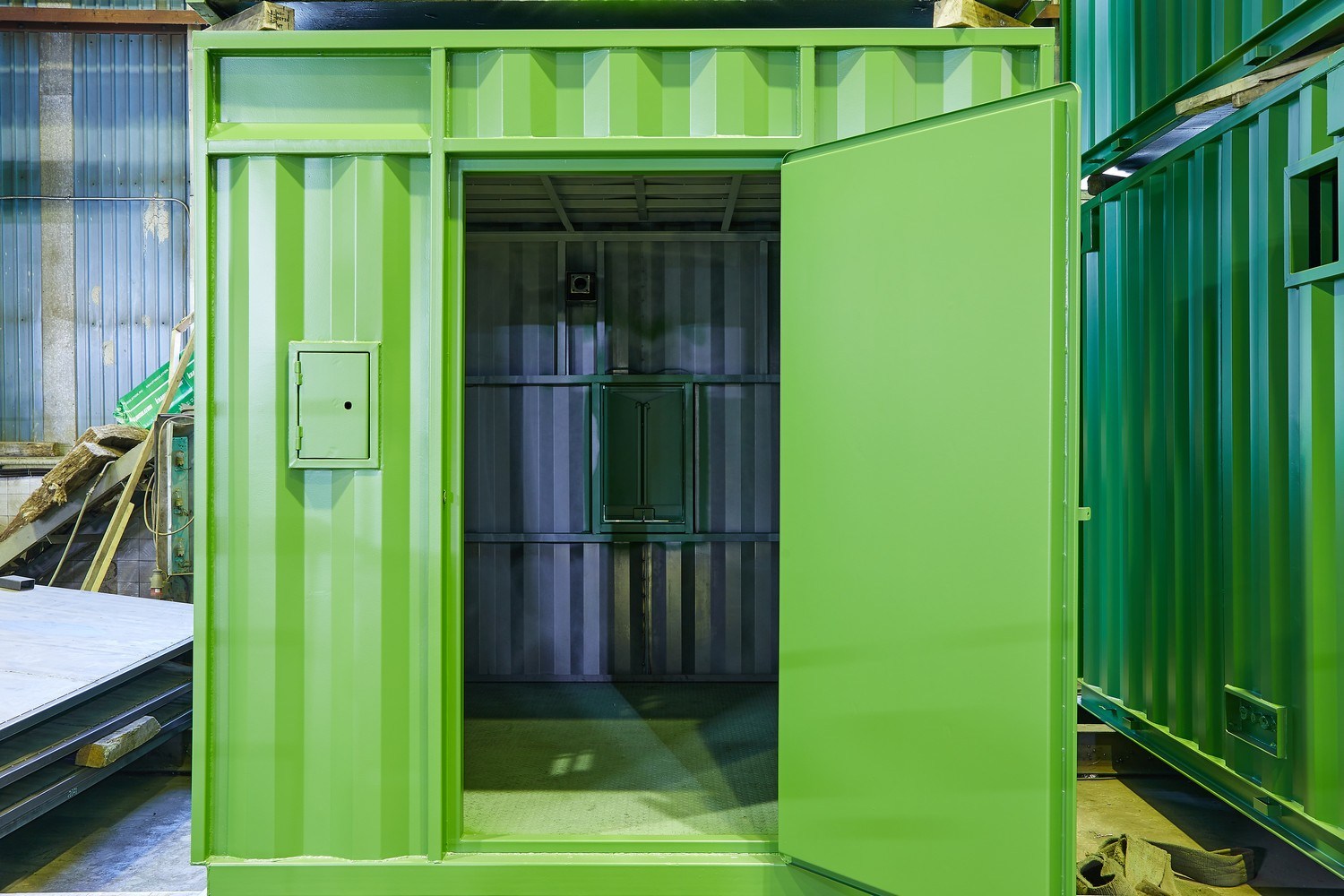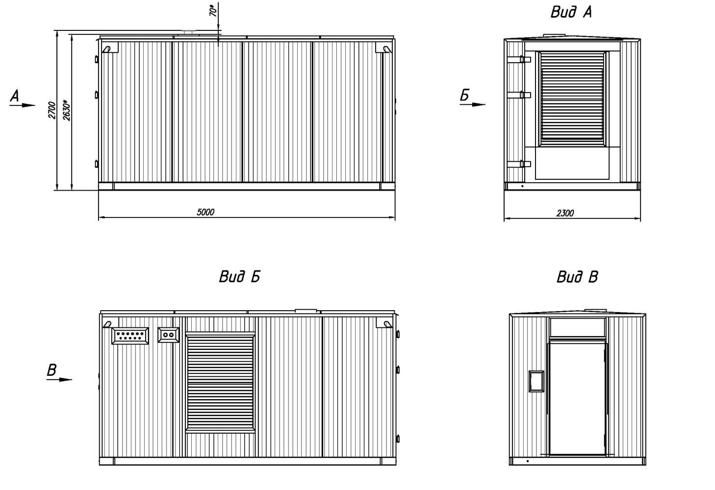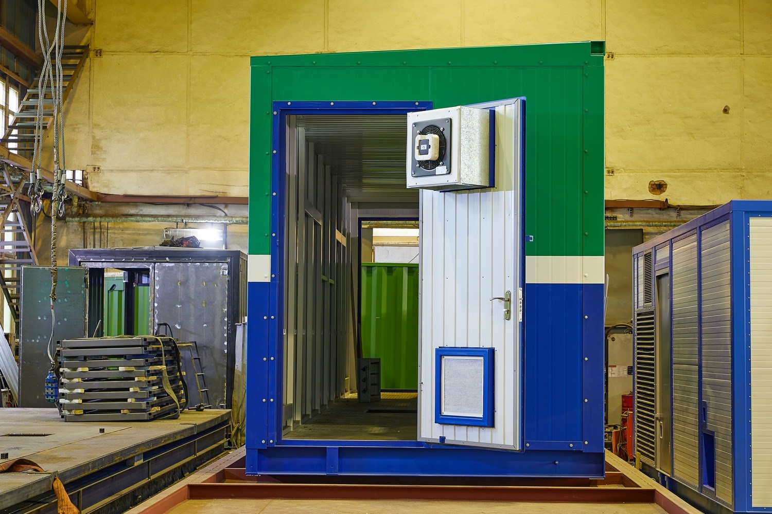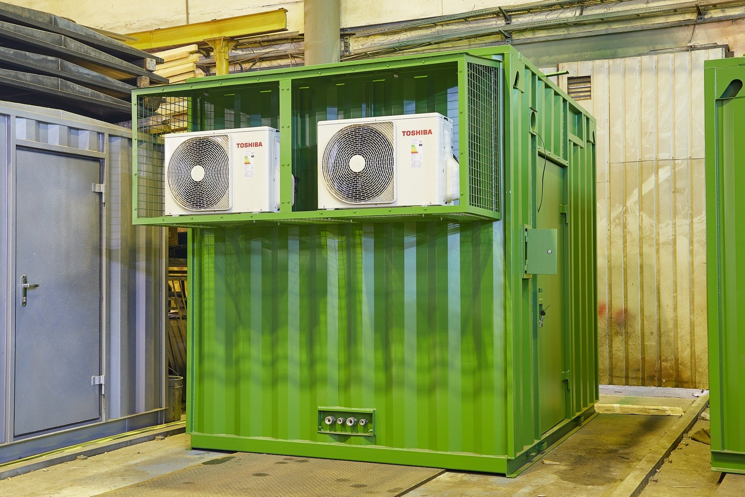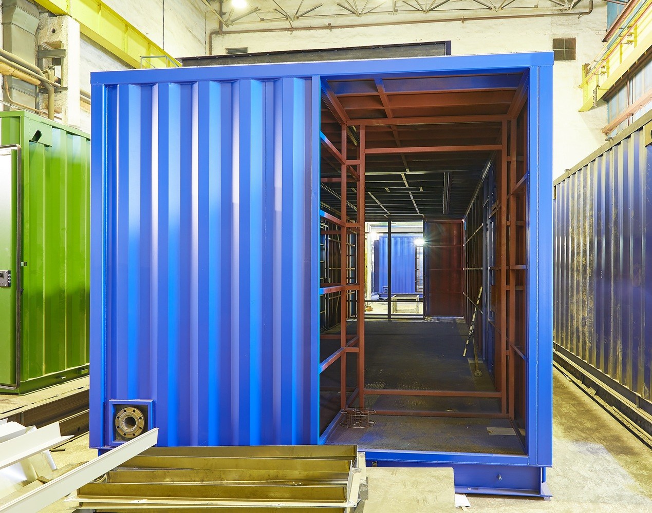 Подготовленность конструкции к последующему утеплению и отделке отличает наши контейнеры от «морских». Контейнер имеет негорючую теплоизоляцию и рассчитан для работы в диапазоне температур окружающего воздуха от - 50 до +50 град.С. Технологический проем для монтажа и демонтажа основного оборудования - в торцевой стене контейнера, совмещенной с выпускным клапаном. Вентиляционные люки с установленными в них жалюзийными решётками и крышками над ними с наружной стороны контейнера.