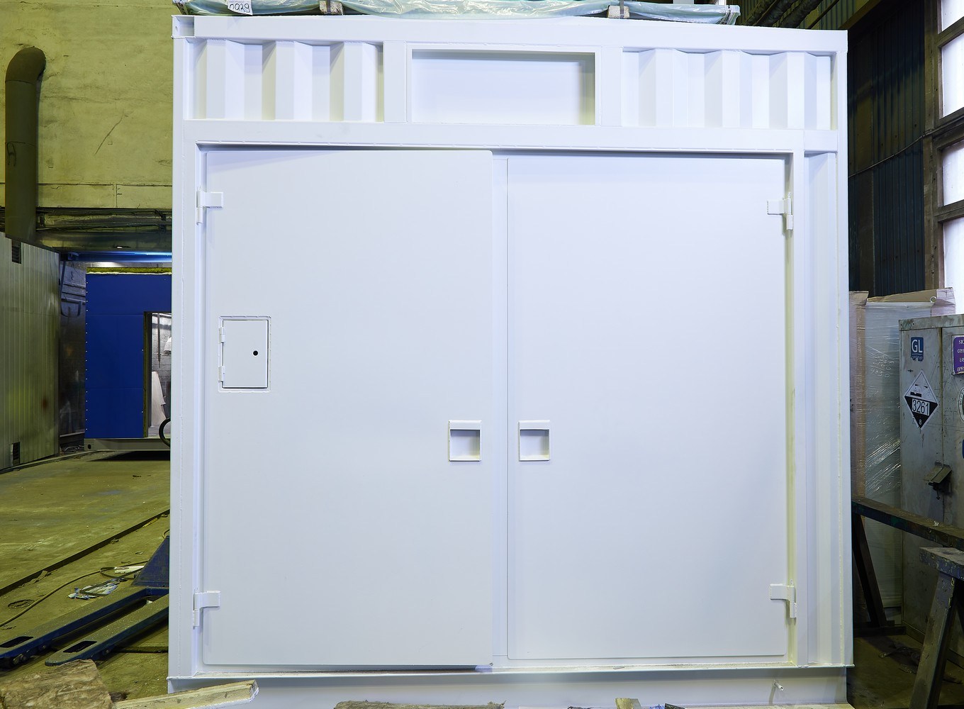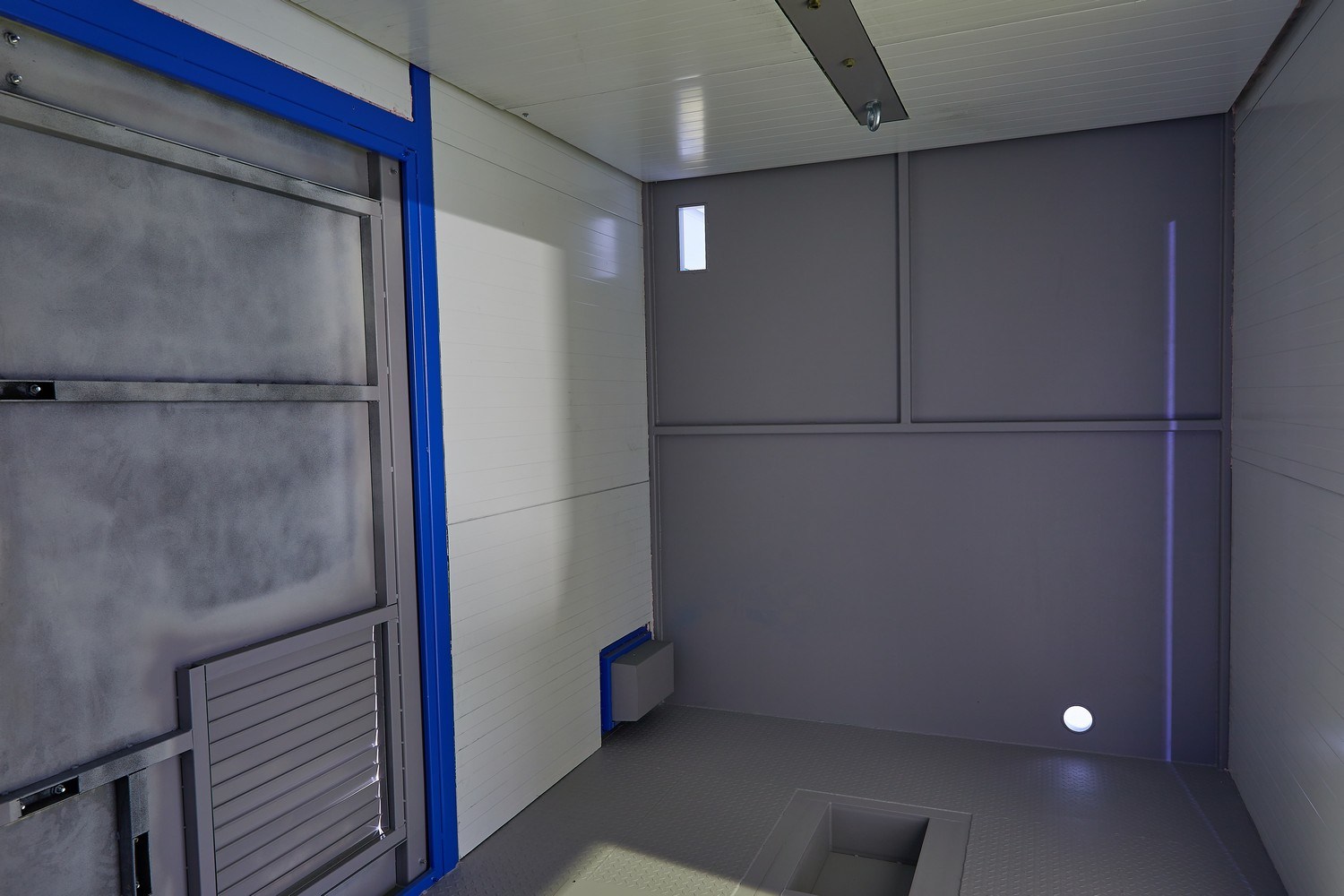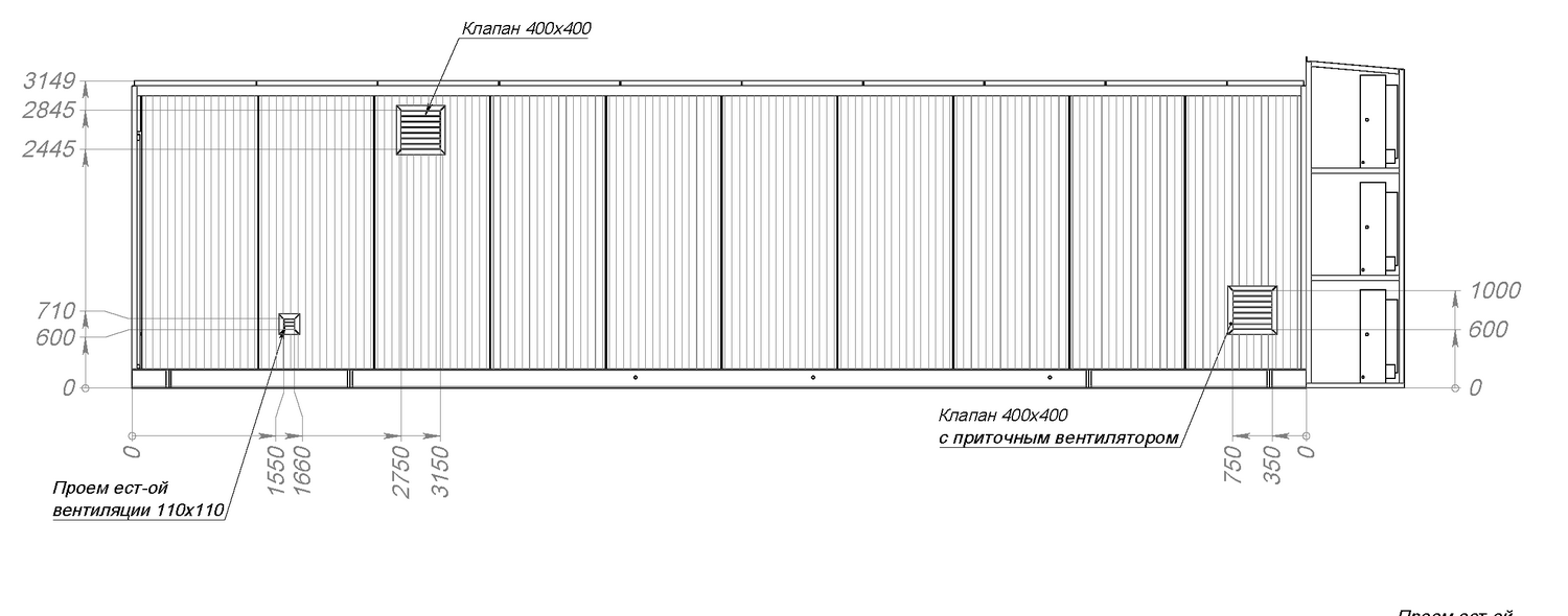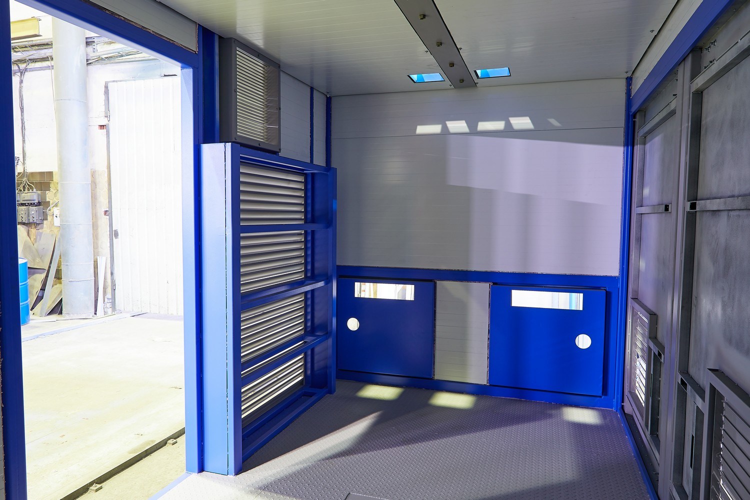 Подготовленность конструкции к последующему утеплению и отделке отличает наши контейнеры от «морских». Контейнер имеет негорючую теплоизоляцию и рассчитан для работы в диапазоне температур окружающего воздуха от - 50 до +50 град.С. Технологический проем для монтажа и демонтажа основного оборудования - в торцевой стене контейнера, совмещенной с выпускным клапаном. Вентиляционные люки с установленными в них жалюзийными решётками и крышками над ними с наружной стороны контейнера.