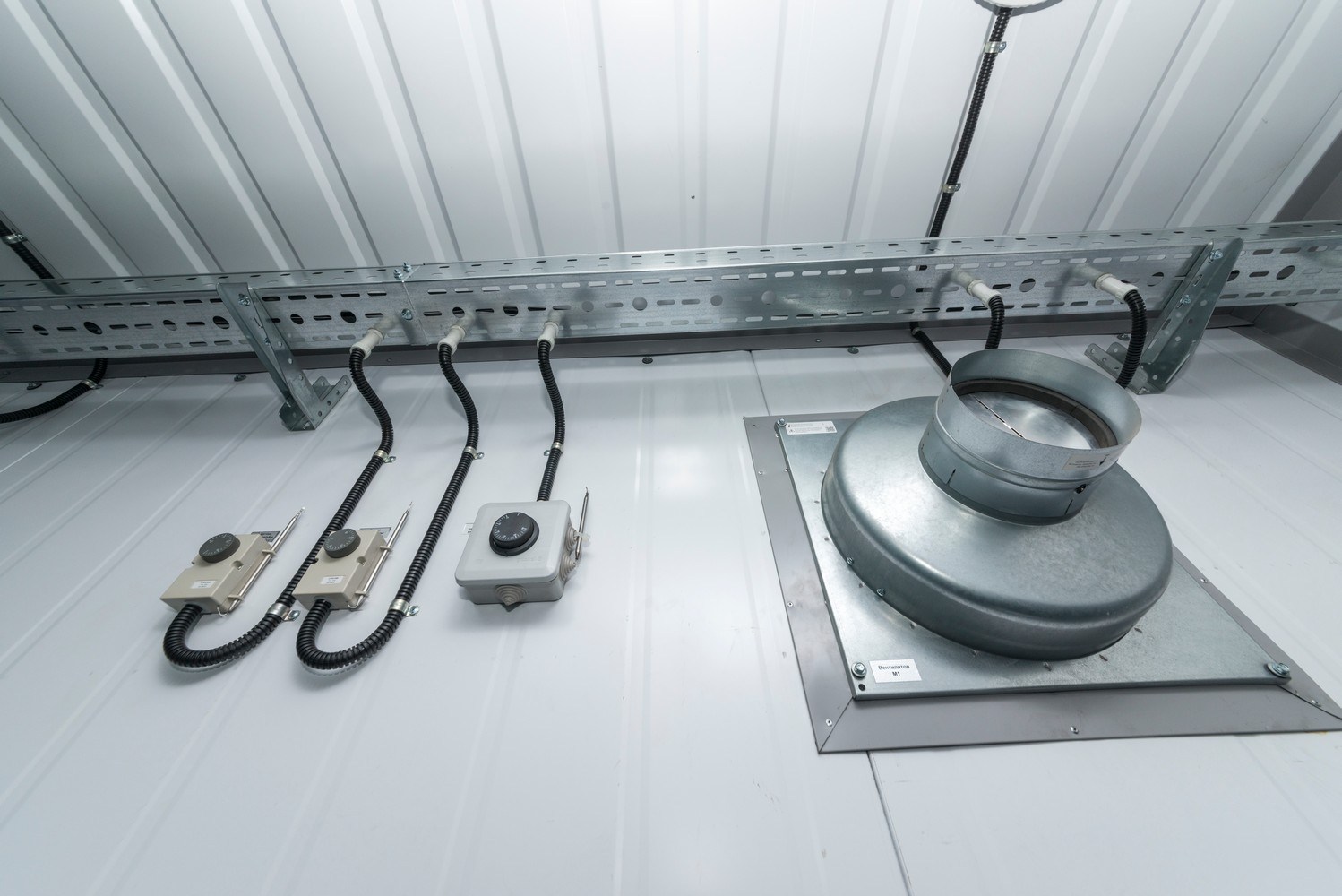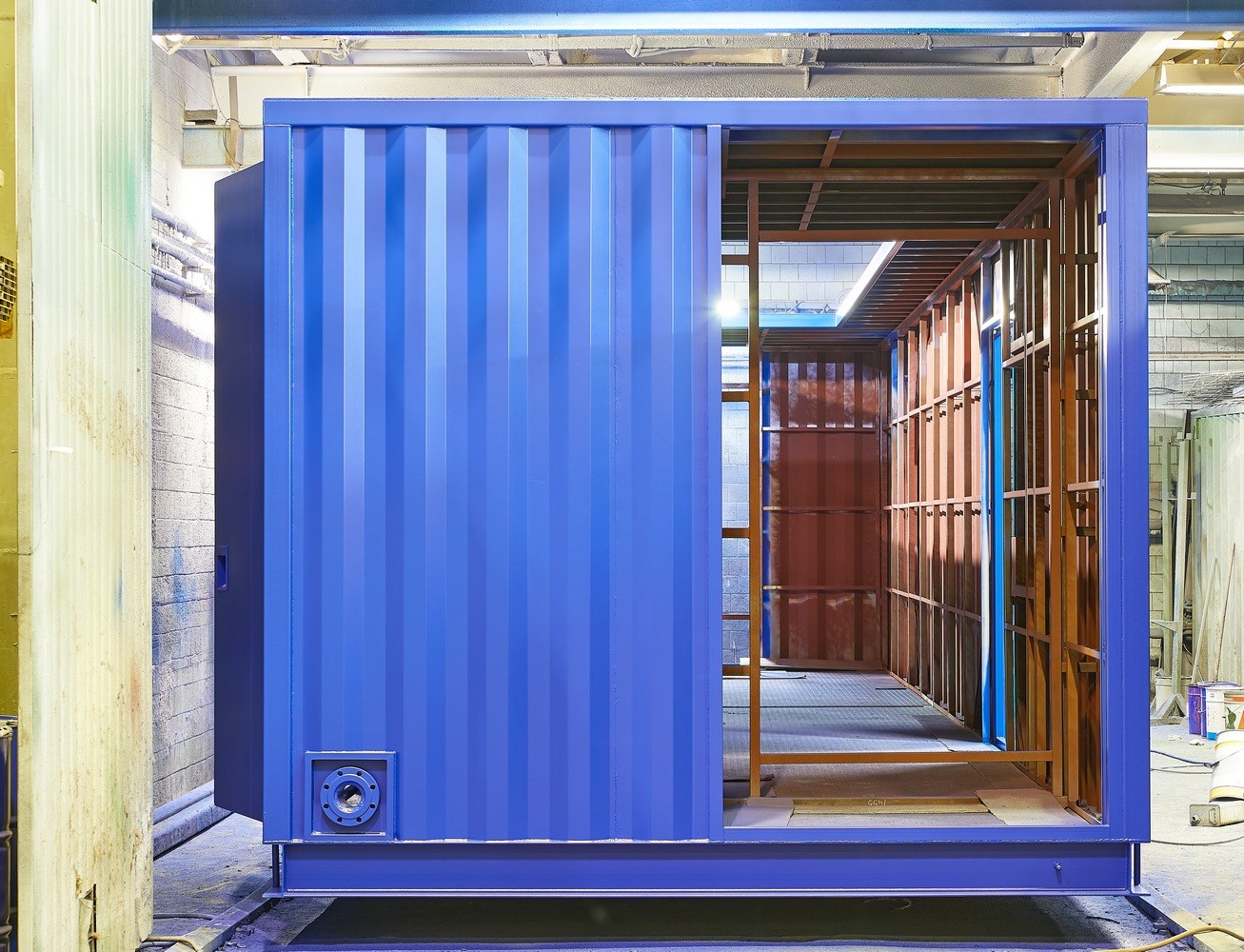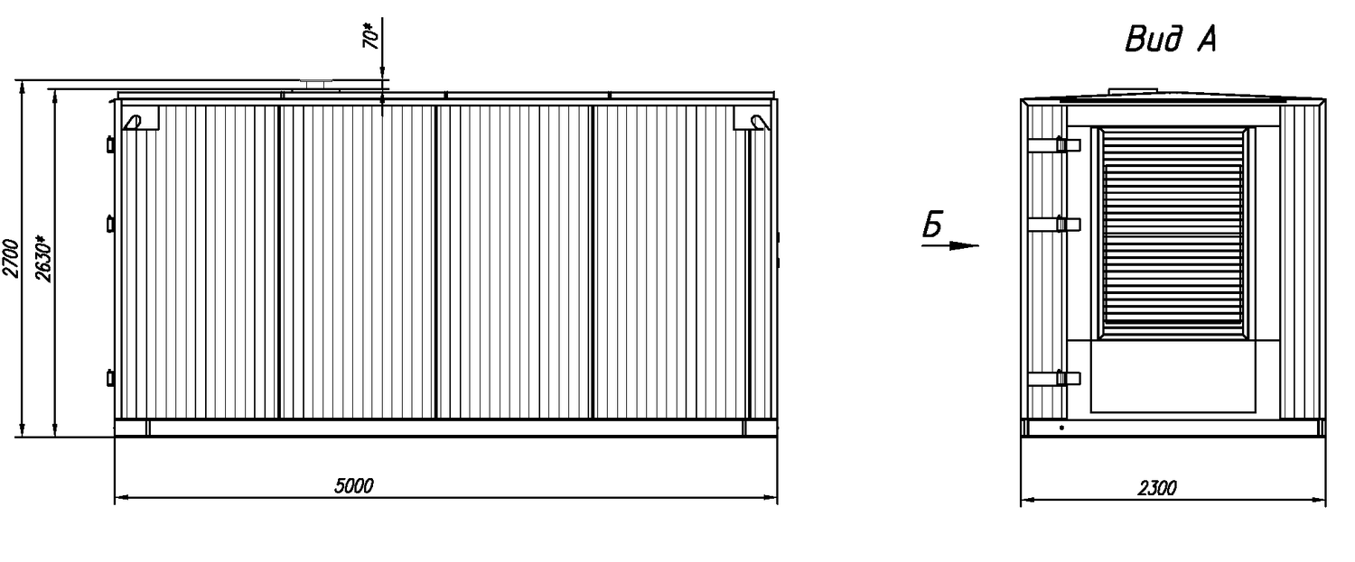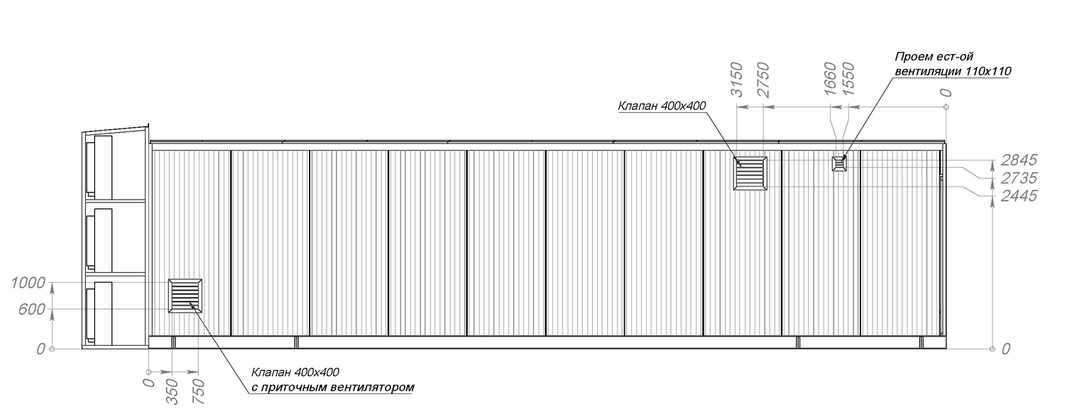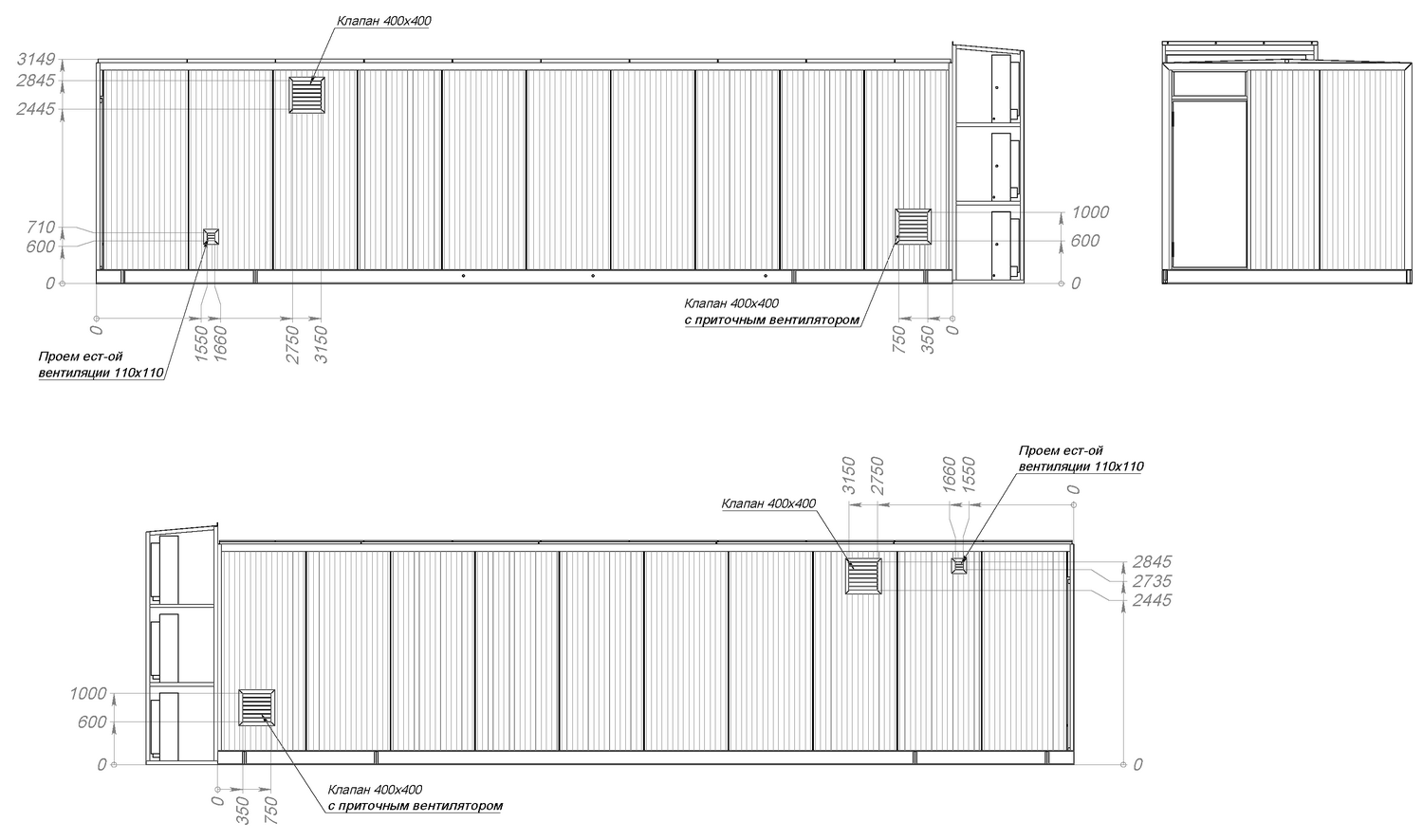 Подготовленность конструкции к последующему утеплению и отделке отличает наши контейнеры от «морских». Контейнер имеет негорючую теплоизоляцию и рассчитан для работы в диапазоне температур окружающего воздуха от - 50 до +50 град.С. Технологический проем для монтажа и демонтажа основного оборудования - в торцевой стене контейнера, совмещенной с выпускным клапаном. Вентиляционные люки с установленными в них жалюзийными решётками и крышками над ними с наружной стороны контейнера.