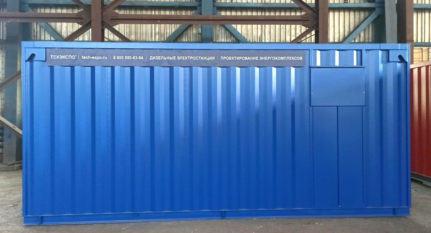 В апреле 2021 года «Техэкспо» изготовило два блока для двух ДГУ мощностью 600 кВт. Цельносварные с габаритами 7000х2500х3000 мм. В одном металлическом блок-контейнере в отдельном отсеке размещен дополнительный топливный резервуар на 2000 л, который является общим для двух ДЭС. Он соединен системой топливопроводов для подачи топлива во вторую ДЭС.