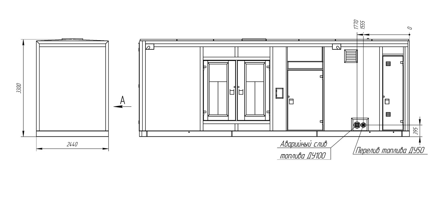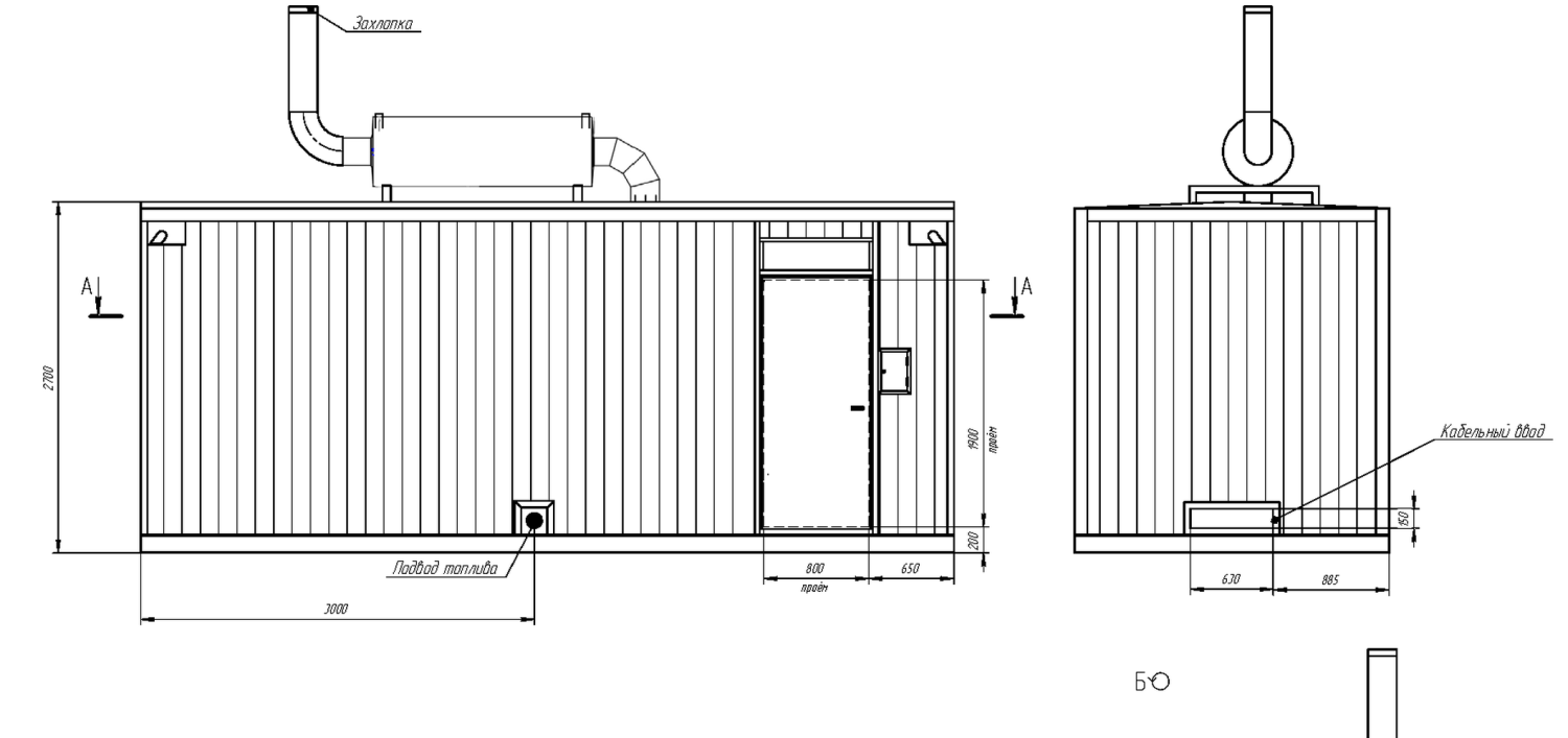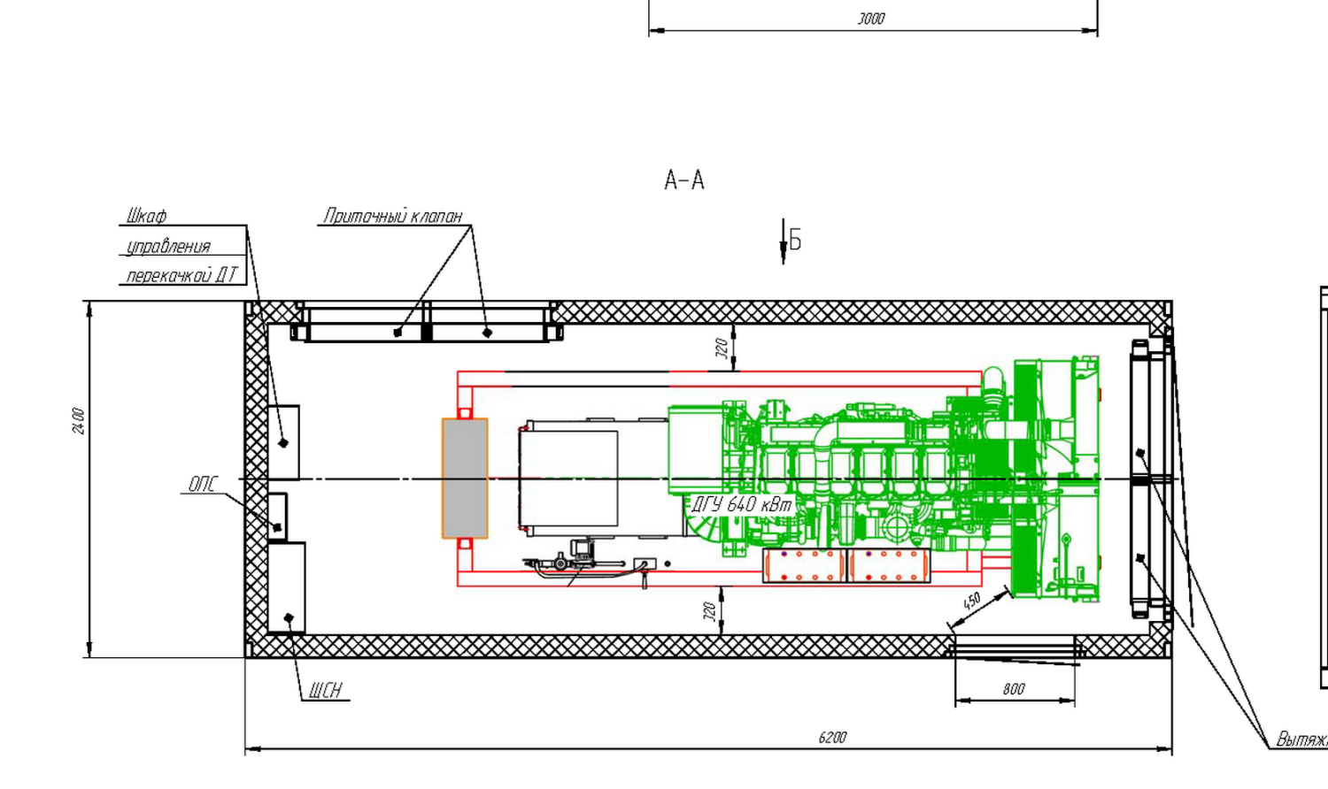 для ДЭС 450 кВт габаритами 3400*1300*2250