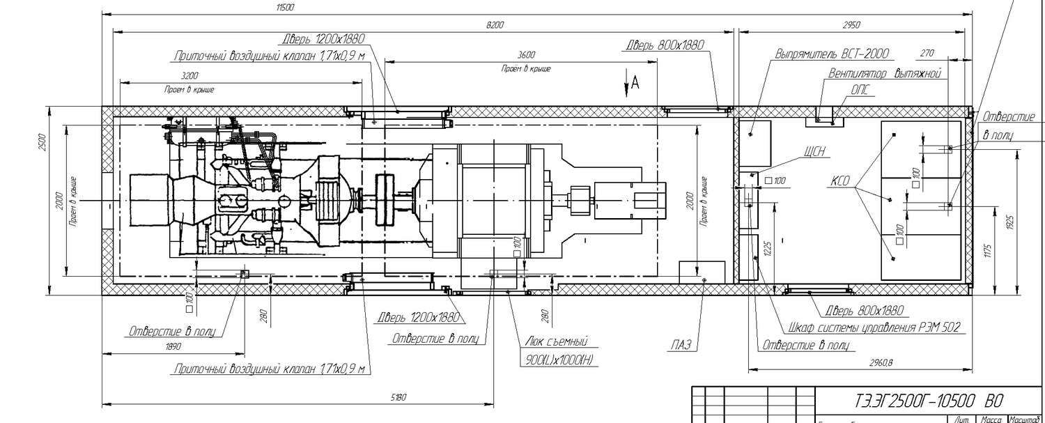 12100х3000х3000 мм для газопоршневой электростанции Caterpillar G3516