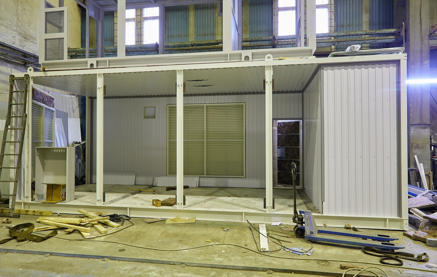 Блок-модуль поставляется на объект со смонтированным и испытанным технологическим оборудованием, системой отопления, вентиляции, освещения, сигнализации.