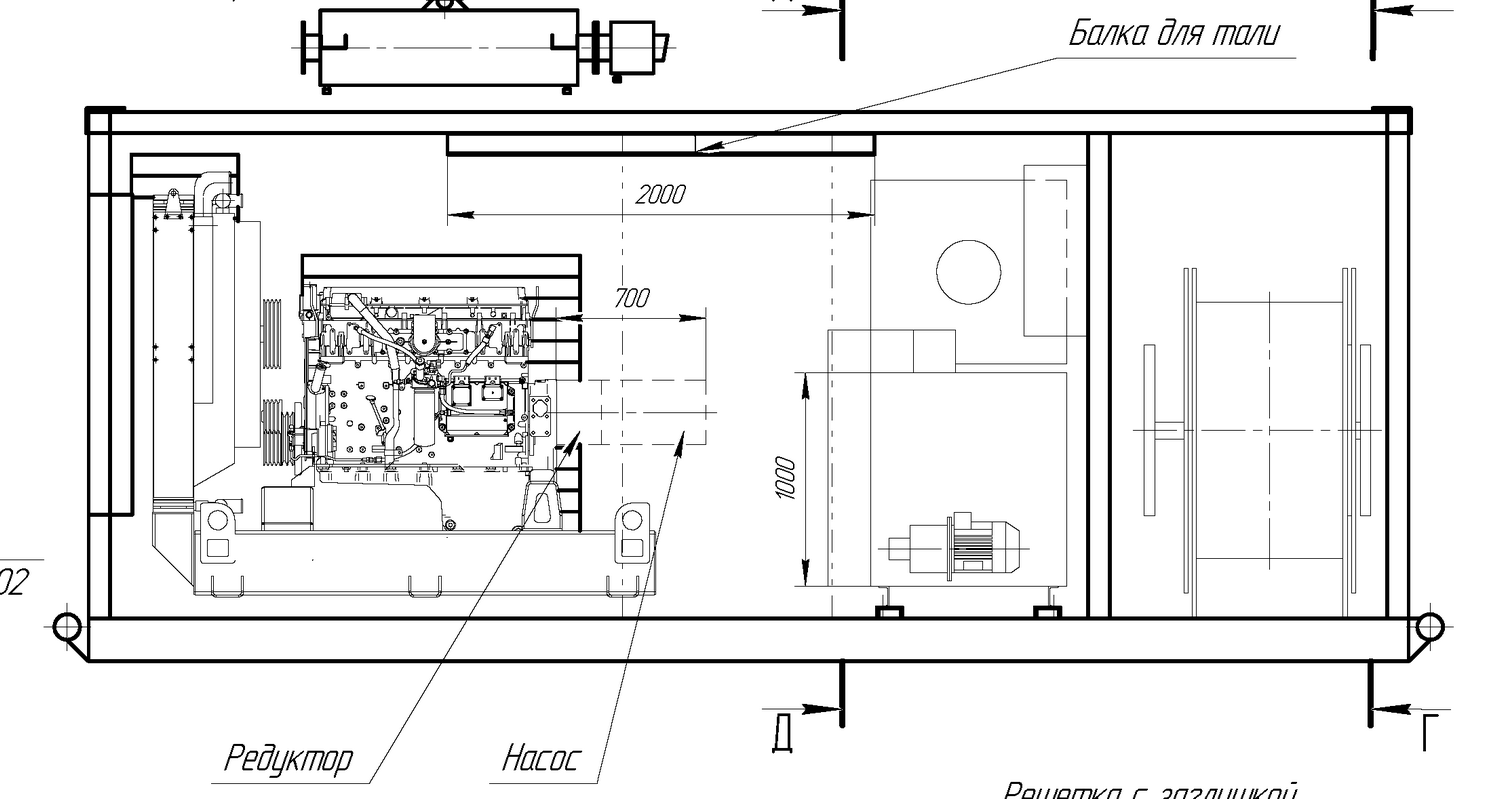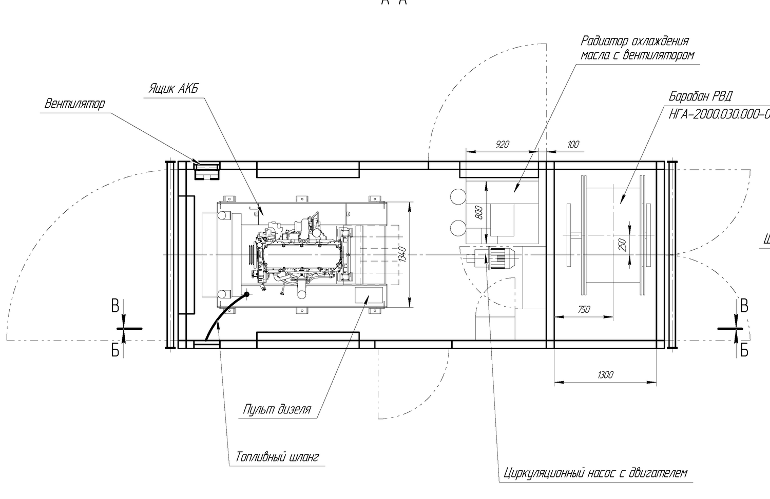 Корпус состоит из двух отсеков — утепленного и неутепленного. Утепленный отсек служит для размещения оборудования ДГУ. В неутепленном отсеке располагается барабан рукава высокого давления (для насоса). Для заправки дизельным топливом снаружи предусмотрена топливная горловина с защитной крышкой. Внутри обоих отсеков монтируется освещение и пожарная сигнализация.