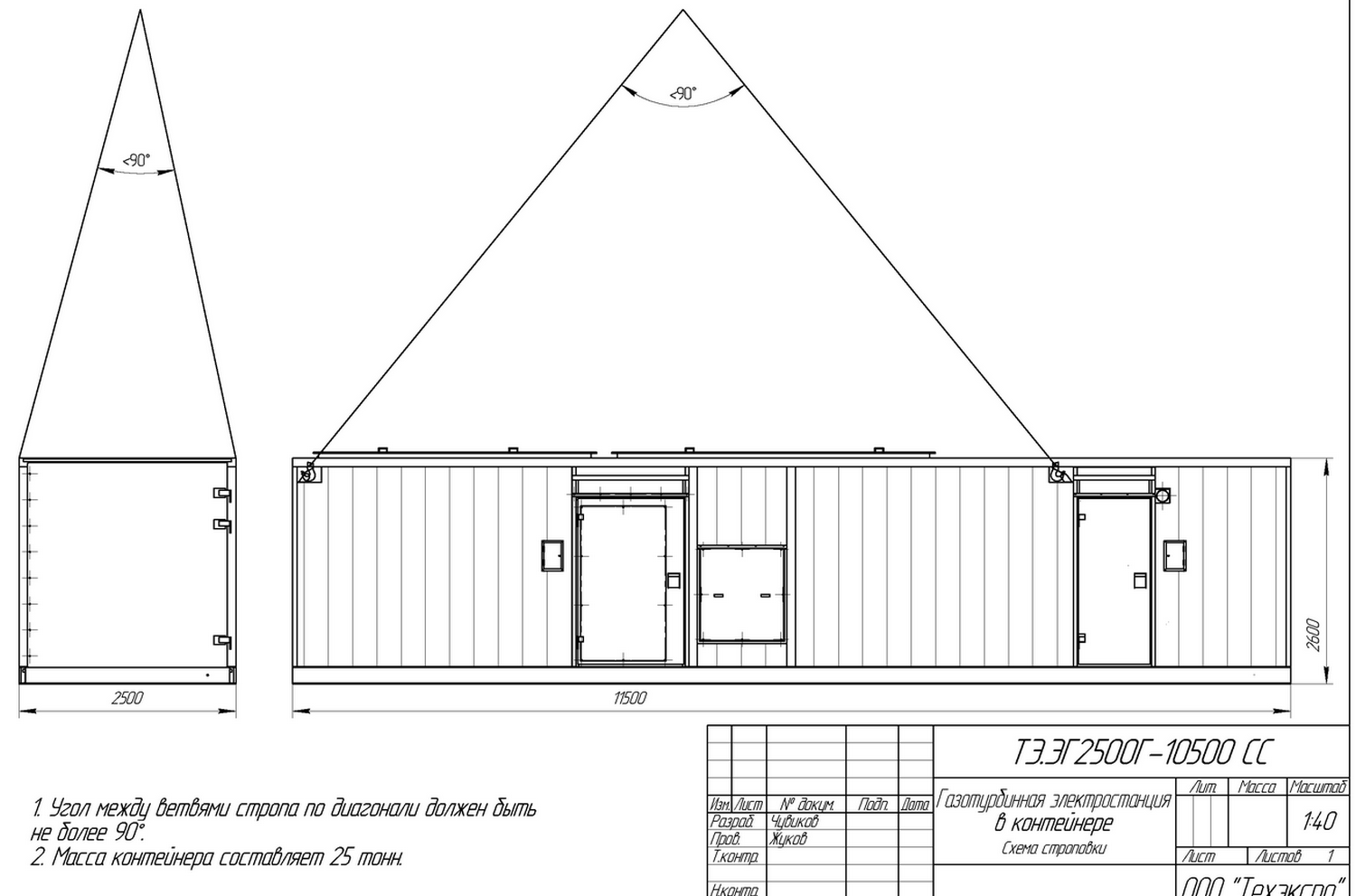 В феврале 2022 года ООО «Техэкспо» изготовило 2 контейнера габаритами 14000х3200х4700 мм для двух ДЭС по 2 МВт каждая. Установлены на колесные автомобильные полуприцепы габаритами 14000х3200х4700 мм. Конструкция обеспечивает их надежное крепление.
