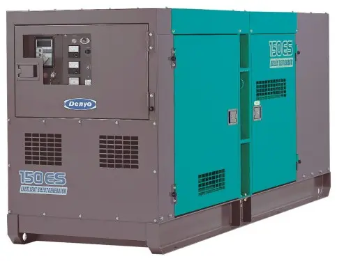 Дизельная электростанция Denyo DCA-150ESK выполнена во всепогодном шумозащитном кожухе (уровень шума 62 дБ) на базе двигателя Komatsu SAA6D102E-2-D (производство: Япония). Топливный бак объемом 250 л. встроен в раму ДГУ. Дополнительно для ДГУ установлен предпусковой подогреватель двигателя.
