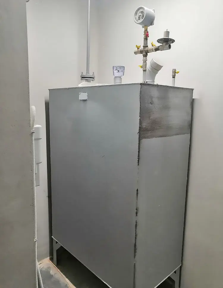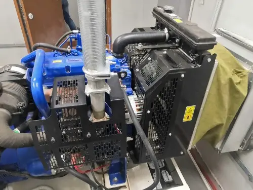ООО «Техэкспо» поставило для полицейского участка в Москве дизельную электростанцию FG Wilson P 55-3 мощностью 40 кВт. ДГУ комплектуется панелью управления DSE 7320, выносным пультом для дистанционного контроля ДГУ по протоколу J1939, RS232-modem и RS485-портами, клеммами для соединения с модулями мониторинга DSENet (Modbus RTU, с выводом информации о состоянии установки на ПК оператора). Особый акцент сделан на топливоснабжении: ООО «Техэкспо» разработало и изготовило уникальный топливный бак 1000 л с двустенным датчиком уровня топлива и системой контроля межстенного пространства. Для подачи топлива из расходного бака 1000 л. во встроенный бак на раме станции на ДГУ установлена система автоматической подкачки топлива, она включает в себя насос типа SAB BE, установленный на раме ДГУ, и автоматику управления системой подкачки топлива. Дополнительно проложен топливный трубопровод от расходного бака до встроенного бака ДГУ. Дыхательный канал расходного бака проложен в шахте с пределом огнестойкости REI 180. В комплексацию вошли поддон для защиты от розлива жидкостей ДГУ, топливный насос, дыхательный клапан СМДК-50 для регулирования давления в газовом пространстве, щит аварийного ввода резерва CTI 100, система удаления отработанных газов и система вентиляции. Выхлопные газы выводятся наружу по теплоизолированному стальному трубопроводу через глушитель. При запуске ДГУ автоматически открываются клапаны технологической вентиляции для подачи охлаждающего воздуха в помещение с ДГУ. Для выброса нагретого воздуха при работающей ДГУ открывается выбросной клапан. В рамках установки провели строительно-монтажные работы с выносом пульта управления. Проложены кабельная и топливная линии: от ДГУ до АВР (кабельная) и от топливной ёмкости к ДГУ (топливная). |