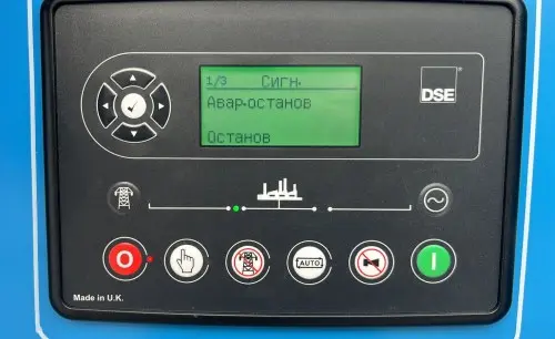 ДГУ первой степени автоматизации с двигателем Baudouin 6M16G350/5 выполнена в шумопоглащающем всепогодном кожухе. Топливный бак объемом 400 л встроен в раму и обеспечивает приблизительно 6 часов неприрывной работы. ДЭС оснащена системой аварийной остановки, датчиком уровня топлива, промышленным глушителем, управляется контроллером DeepSea DSE-6120 с русским интерфейсом. Габариты ДЭС в кожухе: 3920х1300х1970 мм.