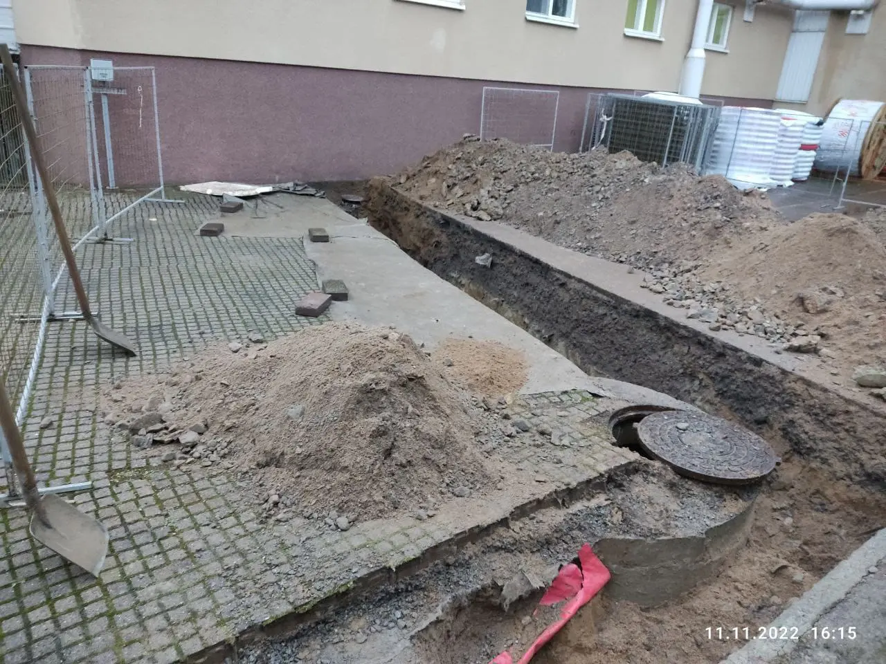 - Для прокладки кабельных линий подготовлена траншея от места установки ДГУ до здания помещения ГРЩ глубиной не менее 700 мм и шириной не менее 400 мм. (объем траншеи 45м3)