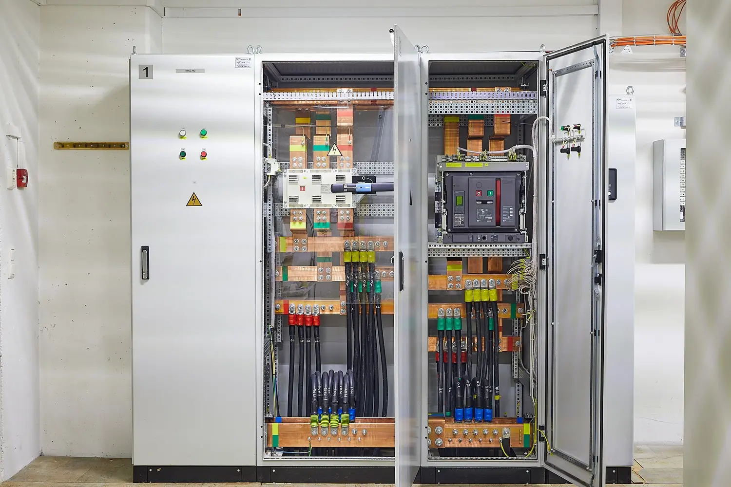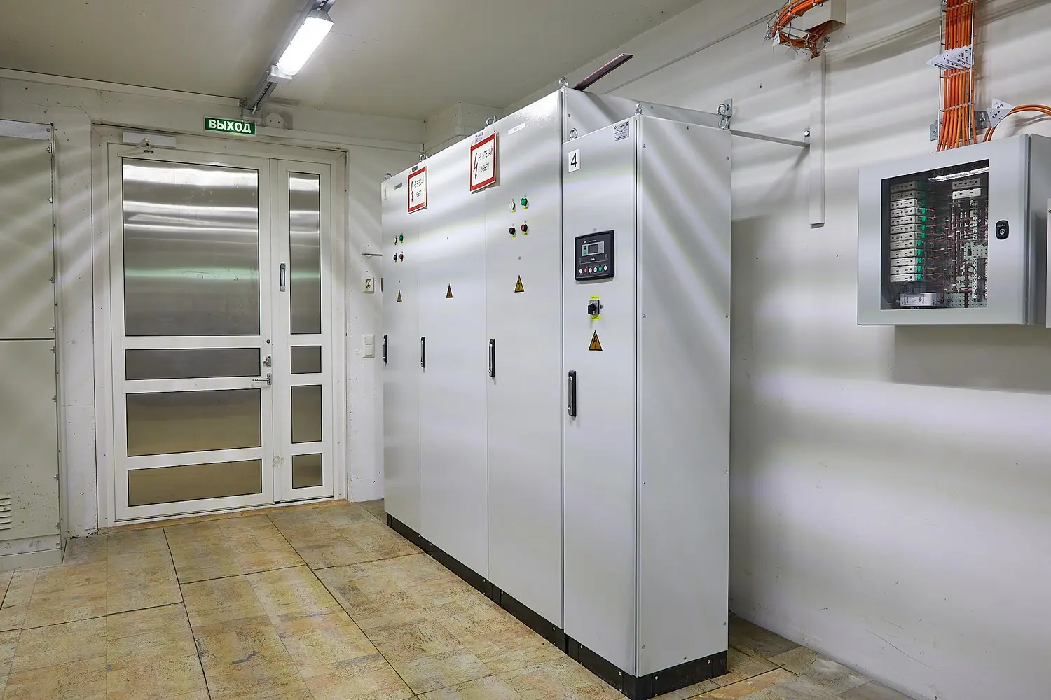 Для подключения ДГУ в систему энергоснабжения помещения биобанка был изготовлен отдельный шкаф АВР на 2000А, состоящий из трех секций. Он установлен в помещении ГРЩ, куда были заведены кабельные линии от ДГУ, и интегрирован в существующее оборудование. Выполнен монтаж и ПНР шкафа АВР.