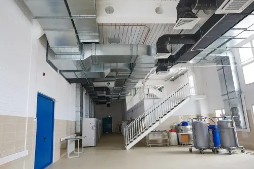 Капитальный ремонт инженерных сетей биобанка включает в себя монтаж автоматической системы вентиляции: установка оборудования системы кондиционирования воздуха и монтаж воздуховодов.