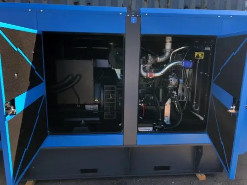 Конструкция кожуха делает возможным легкий доступ к элементам управления станции, а также к основным узлам и агрегатам дизель-генератора для ремонта или технического обслуживания. Передняя съемная дверь предназначена для доступа к глушителю и радиатору. Через распашные боковые двери обеспечивается свободный доступ к двигателю и генератору. Крышка заливной горловины топливного бака, крышка для заправки охлаждающей жидкости находятся снаружи кожуха. Сливная пробка масляного бака находится под рамой. Панель управления станцией, силовой электрический шкаф скрыта за дверцей с иллюминатором, которая обеспечивает визуальный контроль показаний панели управления. Дверь защищена замком и закрывается на ключ. Кожух дополнительно защищен от доступа посторонних лиц к элементам дизель-генераторной установки. Двери оснащены прочными петлями и ручками с замком, крышки от емкостей технологических жидкостей защищены замком. |