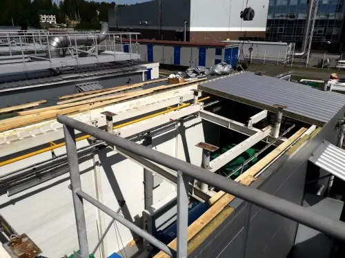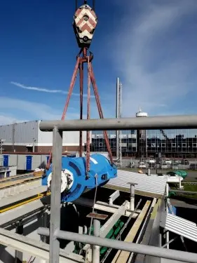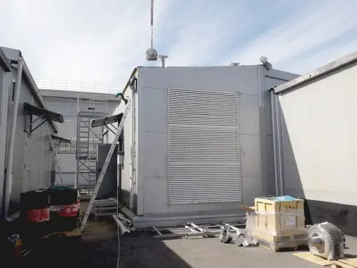 В сентябре 2020 года специалисты компании «Техэкспо» выполнили строительно-монтажные и инженерные работы на энергетическом оборудовании ДИБП-3 крупного дата-центра в Санкт-Петербурге, который оказывает услуги в сфере DC-аутсорсинга. Летом 2019 года мы оказывали услуги монтажа на энергетическом оборудовании ДИБП-2. Разбирали кровлю контейнера, демонтировали генератор и кинетический накопитель с установки. Необходимость капитального ремонта энергетического оборудования наступила после пяти лет эксплуатации. Такой ремонт осуществляется только в заводских условиях. Для этого требуется произвести демонтаж генератора и кинетического накопителя и их замену на новые. Вес оборудования: кинетический накопитель - 5,25 тонны и генератор - 6,2 тонны. Вместе с дополнительными системами станции, такими как расходный топливный бак, венткамера, бак предварительного смешения системы охлаждения дизеля и т.п. станция установлена в контейнер с технологической площадкой на крыше, на которой размещен глушитель, расширительный бак и выносной радиатор системы охлаждения двигателя. Наши специалисты сняли выносной радиатор LU-VE, вес которого составляет около 1 тонны, предварительно отсоединив его от расширительного бака и системы трубопроводов и кабелей, сняли технологическую площадку и демонтировали глушитель. Далее разобрали кровлю и демонтировали люк, вес которого около 600 кг. После чего появилась возможность начать работу с генератором и кинетическим накопителем, которые вместе с дизельным двигателем установлены на общую раму. Специалисты компании «Техэкспо» отсоединили оборудование от установки и при помощи стропов переместили его на транспортные рамы для его отправки в ремонт. Со склада был доставлен новый генератор и кинетический модуль, которые мы установили на раму дизельного динамического источника бесперебойного питания. После чего начали монтаж кровли и люка контейнера. Изготовили узел обхода выхлопной трубы через кровлю, установили и выполнили герметизацию трубы и люка. Собрали технологическую площадку, установили глушитель и выхлопной трубопровод. Прежде чем смонтировать систему охлаждения мы произвели внутреннюю очистку и ремонт бака смешивания системы охлаждения (сварочные работы по герметизации швов). Поменяли прокладки и уплотнения трубопровода охлаждения. Установили на технологическую площадку выносной радиатор LU-VE и расширительный бак. Установили желоба ливнестока. На результат выполненных работ действует гарантия 24 месяца. |