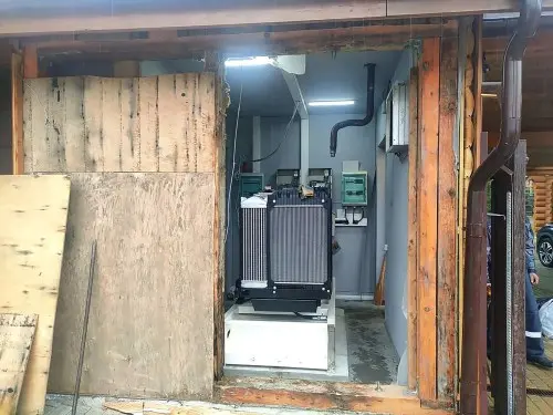 Автоматическая панель управления ДГУ оснащена модулем GSM для дистанционного управления и мониторинга системы через GSM-сети сотовых операторов. Дополнительно был изготовлен и установлен резервный топливный бак объемом 350 л.