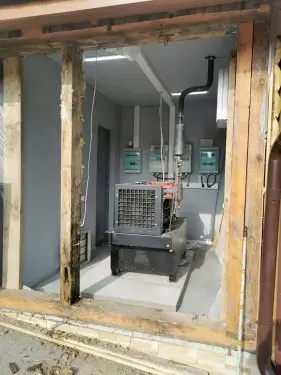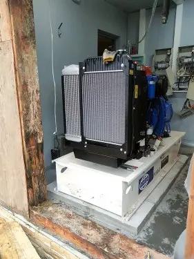 Дизельная электростанцияFG Wilson Pll0-3 с АВР в открытом исполнении на стальной раме с виброопорами была установлена в подготовленное заказчиком помещение на замену старой ДЭС. Специалисты «Техэкспо» произвели такелажные работы по замене оборудования, установили новую ДГУ и ИБП, подключили систему газовыхлопа, смонтировали вентиляцию, установили и подключили дополнительный топливный бак с системой автоматической подачи топлива, произвели пуско-наладочные работы для ДГУ и ИБП.