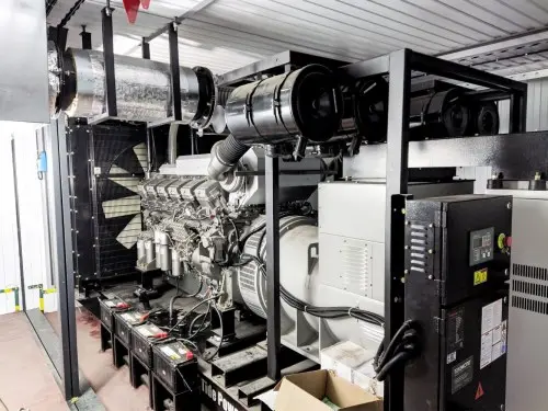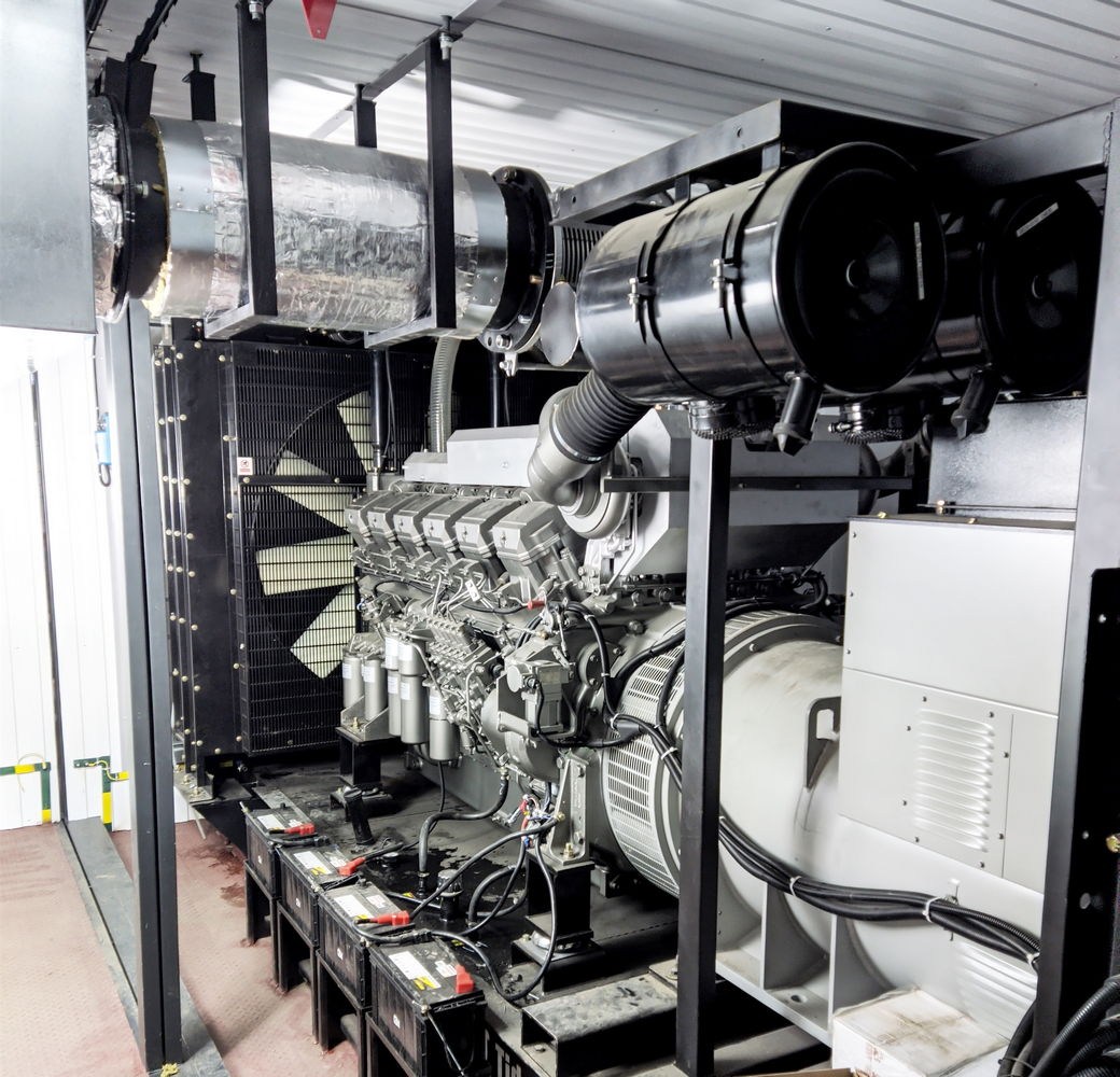 ДГУ ТЭ.1000С-Т400-2РН мощностью 1000 кВт выполнена в контейнерном исполнении на базе дизельного двигателя Mitsubishi S12R-PTA-C. Топливный бак объемом 2000 л. встроен в раму ДГУ. Управляется ДГУ контроллером ComAp AMF20. ДГУ оборудована ЩСН (щитом собственных нужд), системой пожарной сигнализации и автоматического пожаротушения, основного и аварийного освещения, приточно-вытяжной вентиляцией, отоплением. Наружное освещение выполнено скрытой светодиодной лентой над входной дверью и по периметру стены контейнера.