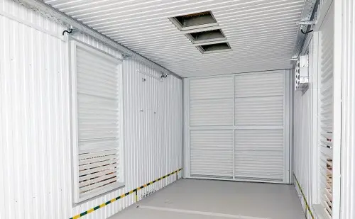 Все двери контейнера имеют размеры 0,9×1,9 м и оборудованы замками с защелкой, открываются изнутри без ключа.