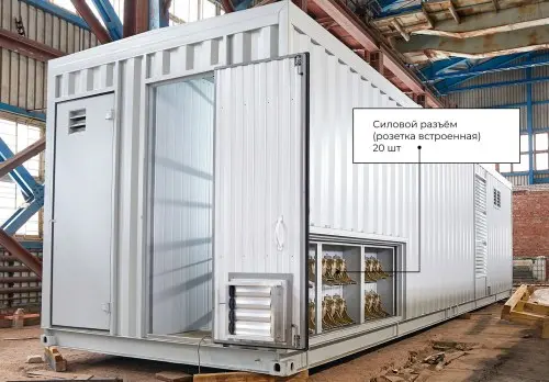 Контейнер электростанции собственного производства ООО «Техэкспо» изготовлен по цельносварной технологии и служит для защиты электроагрегата и оборудования от атмосферных воздействий.