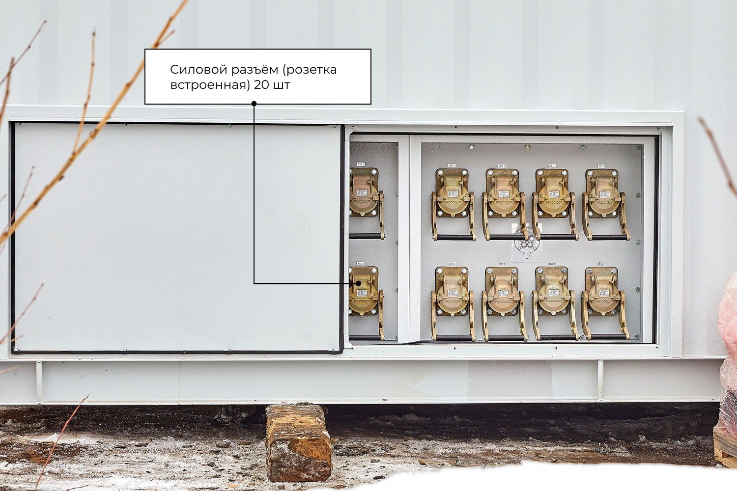 Все внешние кабельные подключения выполнены на основе быстросъёмных разъемов. Разъемы смонтированы в специальных нишах с открывающимися люками. Люки имеют эластичные уплотнения для герметизации в закрытом состоянии.
