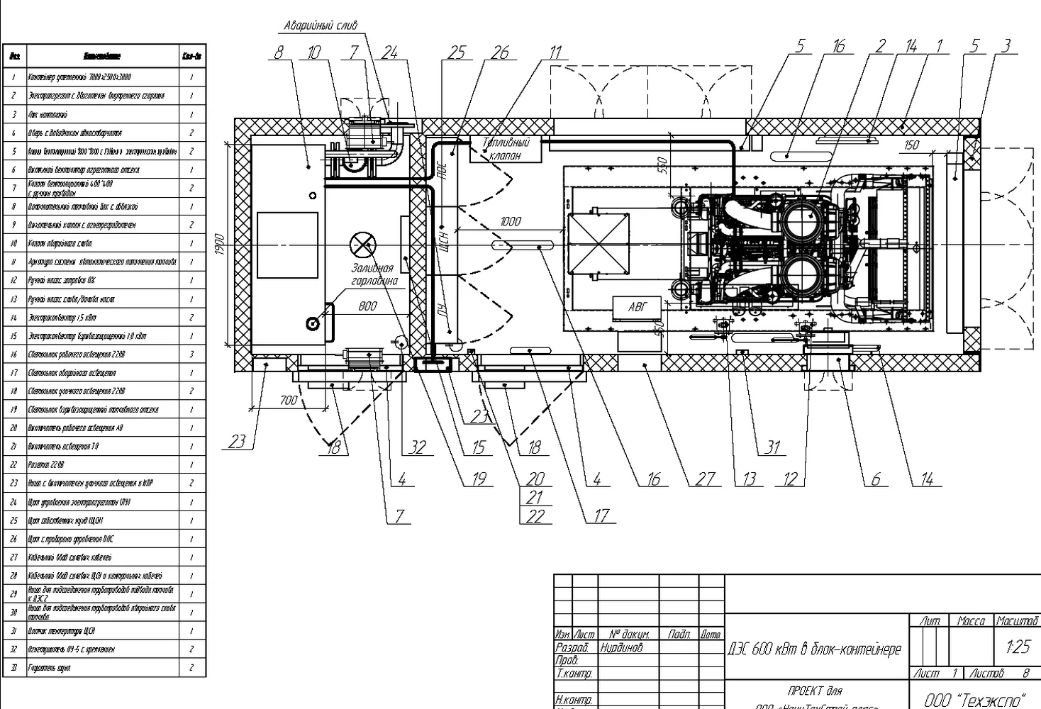 | Решение | В апреле 2021 года «Техэкспо» изготовило два контейнера для двух ДГУ мощностью 600 кВт. Цельносварные контейнеры с габаритами 7000х2500х3000 мм. В одном контейнере в отдельном отсеке размещен дополнительный топливный резервуар на 2000 л, который является общим для двух ДЭС. Он соединен системой топливопроводов для подачи топлива во вторую ДЭС. |