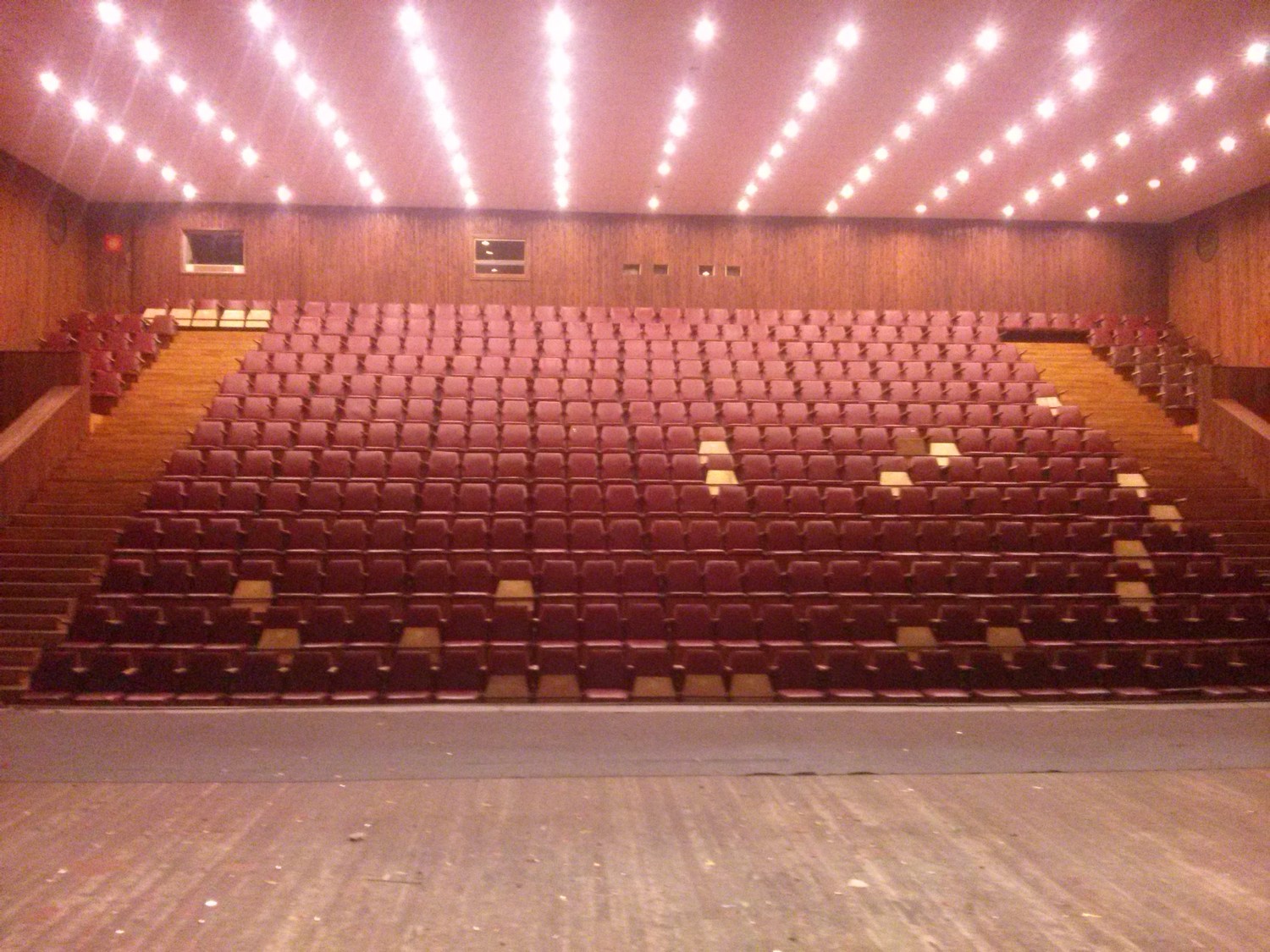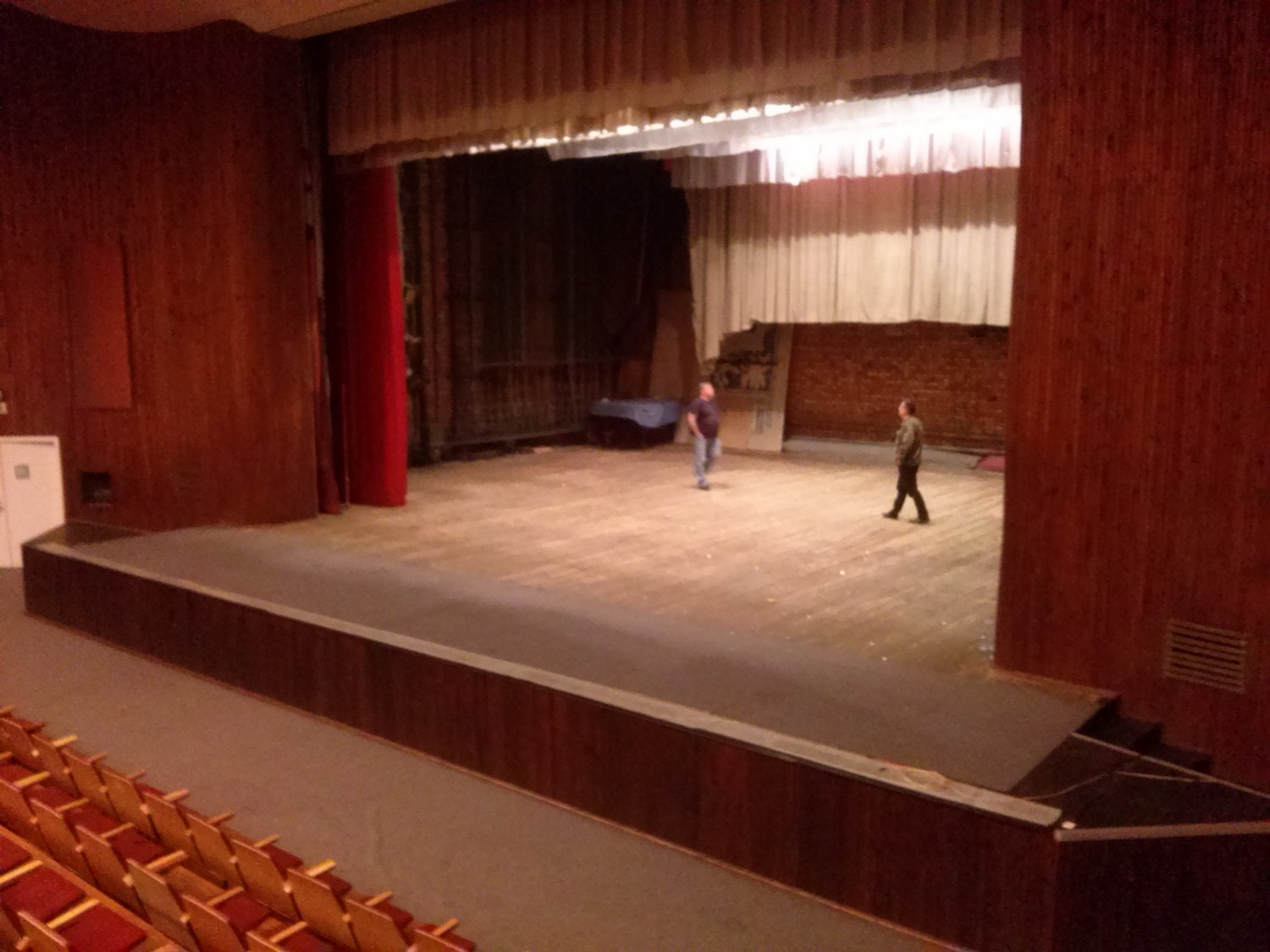 Работы начались с демонтажа и разборки основания пола сцены и зрительного зала. Были сняты лаги из досок и брусков, дощатых оснований щитового паркета, сборные деревянные конструкции, шкафы, столы и кресла зала, разобран каркас деревянных стен. До основания был разобран подвесной потолок, полностью демонтирована электропроводка зала и сцены. А также светильники, розетки, выключатели и студийное оборудование.