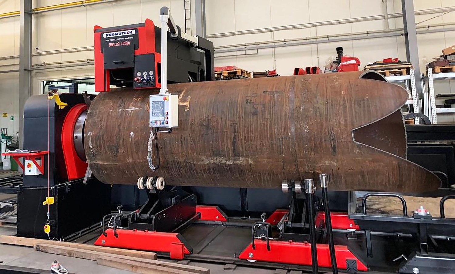 Для цеха по обработке труб и металлопроката на строительстве АЭС было поставлено оборудование для резки труб, в том числе станки для резки труб, сварочное оборудование, универсальные расточные станки. Оборудование для 3D резки труб серии PPCM польского производителя PROMOTECH в количестве 2 шт. Это машина для пространственной резки труб PPCM-1500 - оборудование с ЧПУ позволяет выполнять 3D-резку / скашивание с использованием кислородного топлива или плазмы (газовая и плазменная резка), снятие фаски диаметром 100-1524 мм. Установка оснащена программным обеспечением для расчета раскроя трубы. Внешний диаметр обрабатываемых труб от 100 до 1524 мм, Толщина стенки 3-50 мм. Стоимость оборудования: 165 000 $.