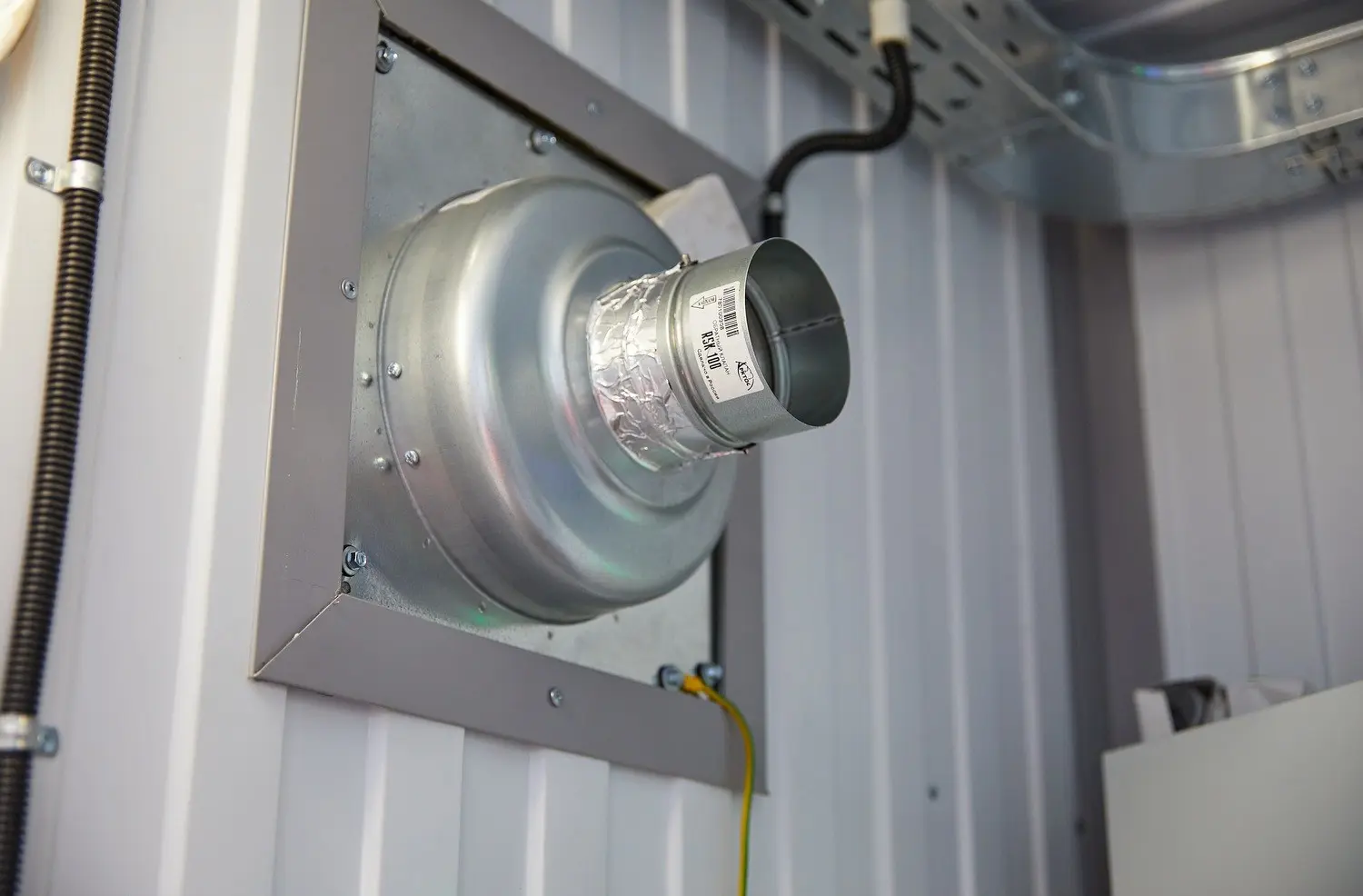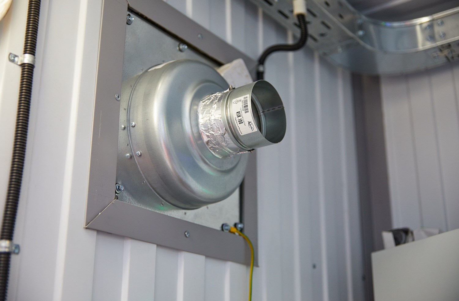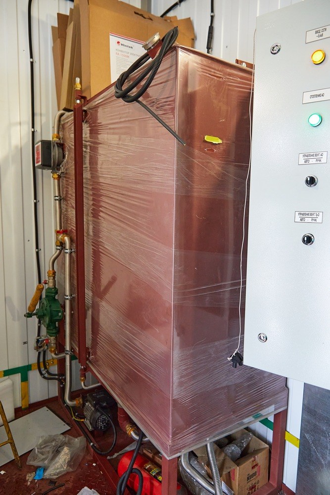 Система вентиляции - приточная, с механическим побуждением, обеспечивает автоматическое поддержание заданной температуры в блок-контейнере на время проведения ремонтных ремонт. При пожаре происходит автоматическое отключение системы вентиляции. Система обеспечивает автоматическое поддержание температуры внутри контейнера в диапазоне от +15°С до +40°С.