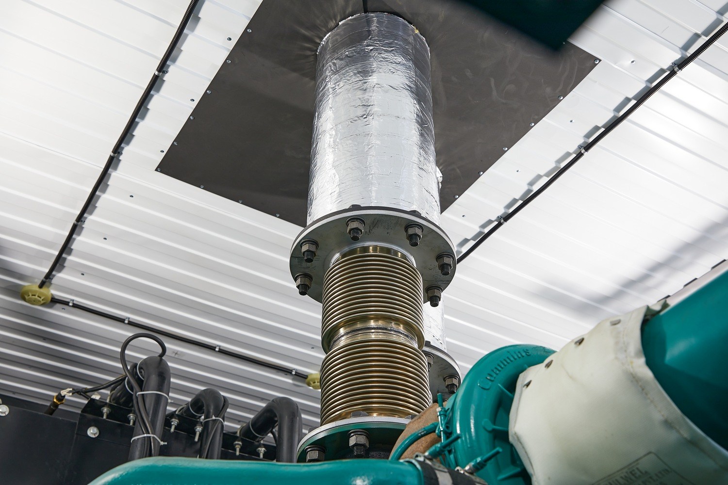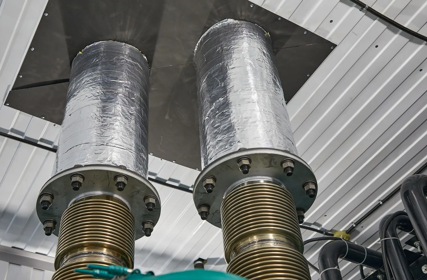 Система выпуска отработавших газов состоит из компенсаторов теплового расширения, промышленных глушителей (уровень демпфирования шума 15 дБА), с сильфоном и искрогасителем.