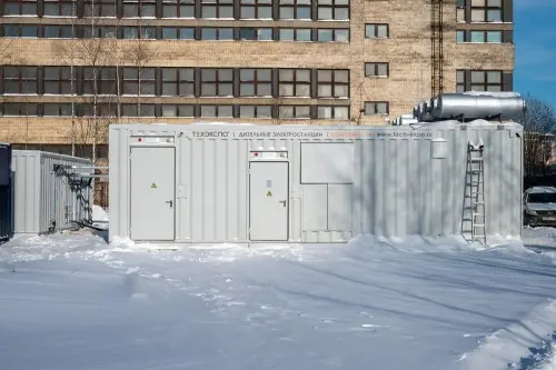 Исполнение - стационарное в контейнере «Север». Корпус контейнера антивандальный, герметичный, в термо-шумозащитном исполнении. Степень огнестойкости «II» по СниП 21-01-97. Степень сейсмостойкости 9 баллов по шкале MSK-64. Контейнер - теплоизолированное электропомещение, внутри которого смонтировано все оборудование, включая инженерные системы (освещение, отопление, вентиляция, розеточная сеть). Степень защиты - IP54, 2 степень огнестойкости. В корпус блок-контейнера встроены входная дверь, проемы воздушных клапанов, жалюзийная решетка, фундаменты (сани) и опорные конструкции для установки и крепления оборудования, проемы ввода/вывода силовых и контрольных кабелей, проемы прохода трубопроводов тепломеханических систем электростанции. В торце блок-контейнера выполнен распашной монтажный проем (открывающаяся створка) для монтажа (демонтажа) ДГУ и прочего оборудования. Сделаны сварной металлокаркас, антикоррозионное покрытие.