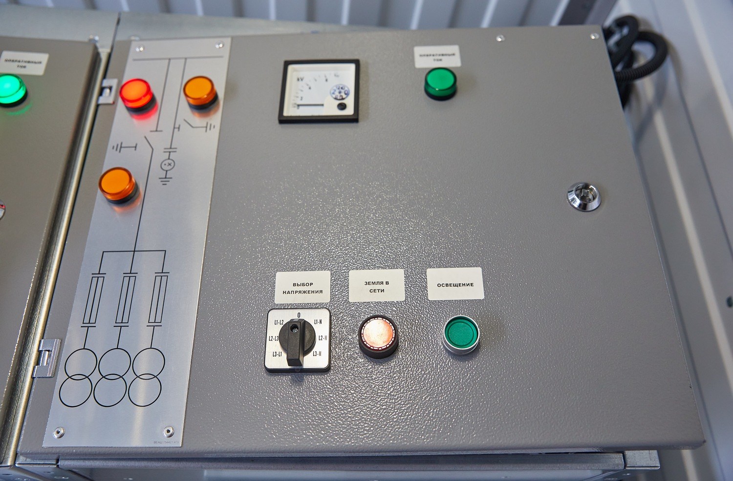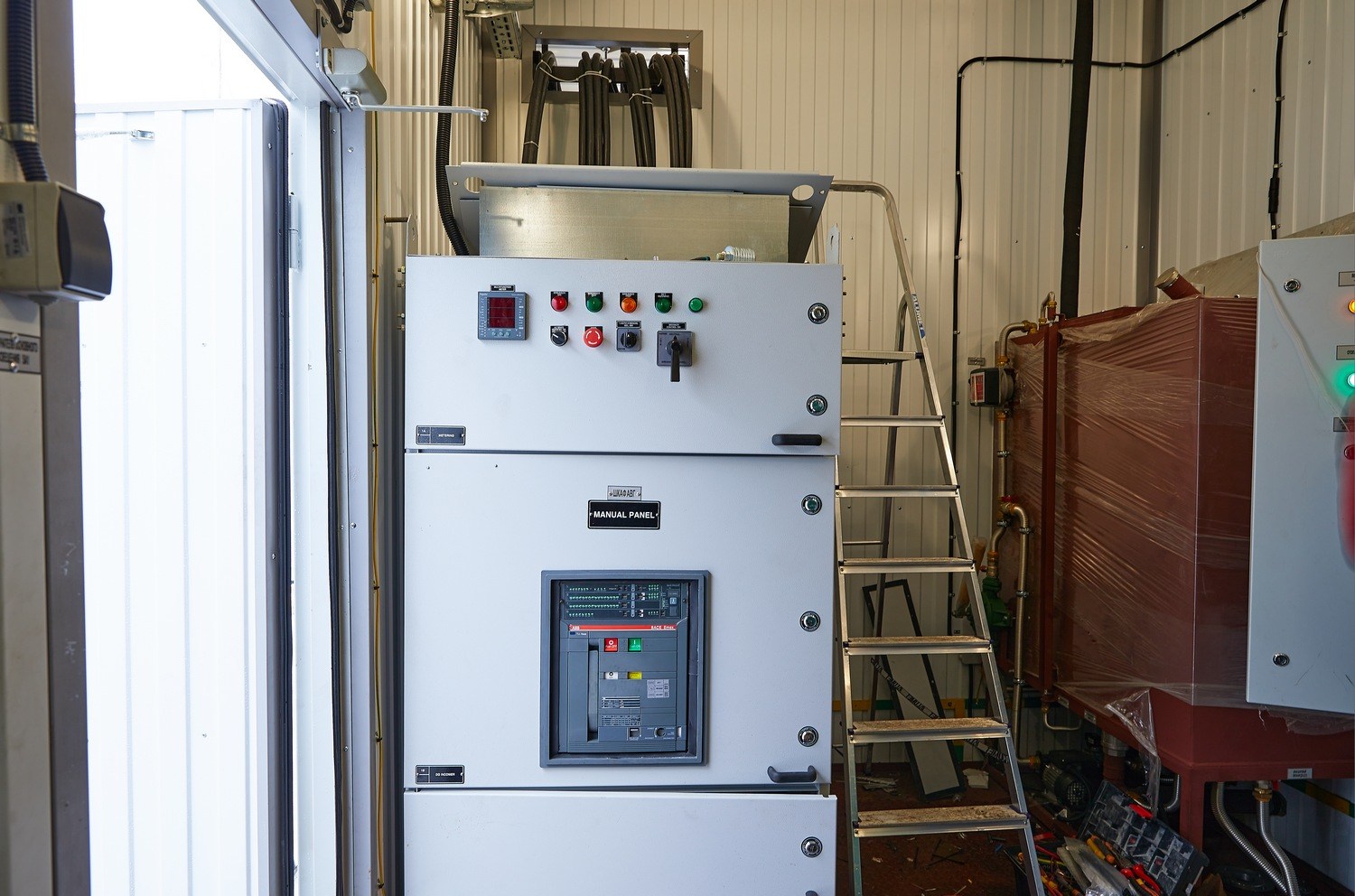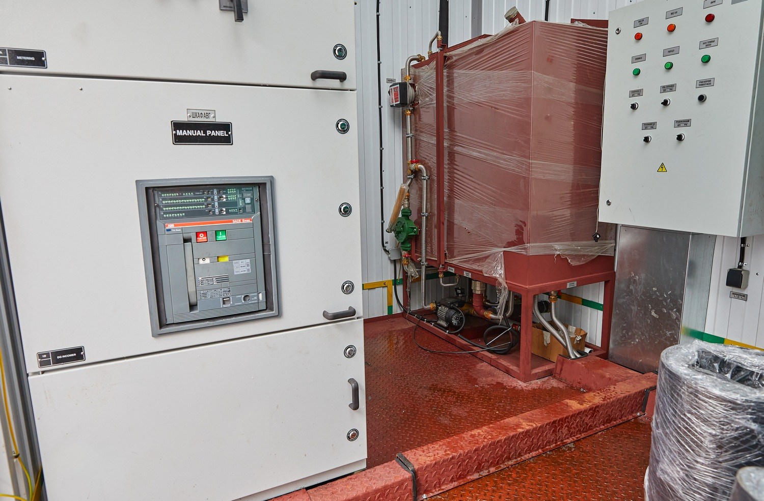Модуль управления с ЗРУ необходим для дистанционного останова, запуска ДГУ, управления энергокомплесом, распределения и коммутации электроэнергии от ДГУ к БУ. Блок-контейнер модуля управления разделен перегородкой на два помещения: помещение РУ-6,3 кВ и помещение оператора.