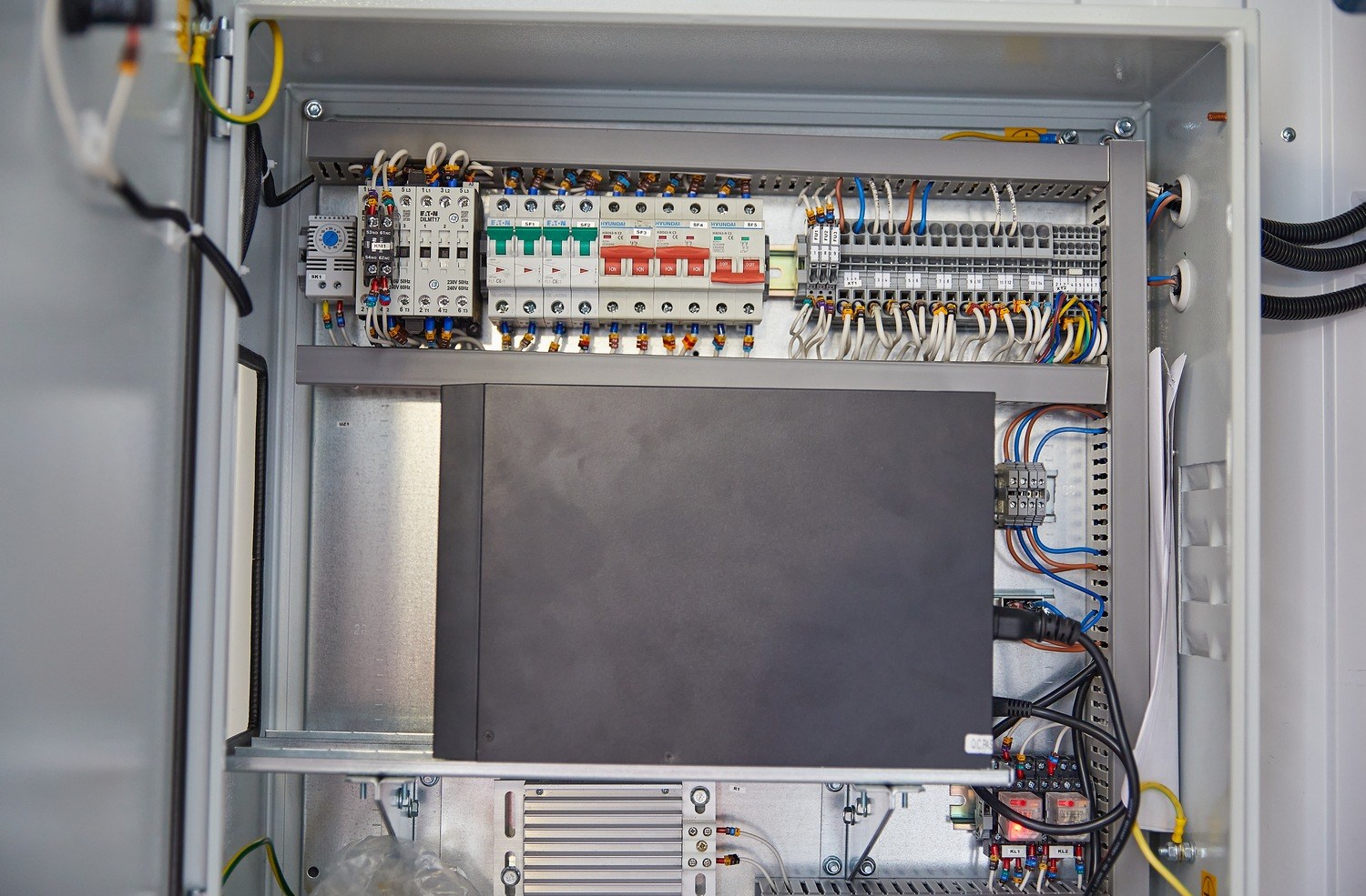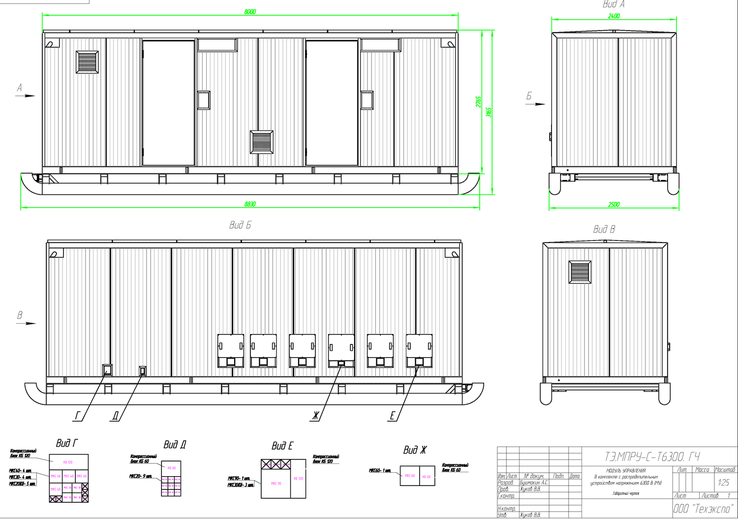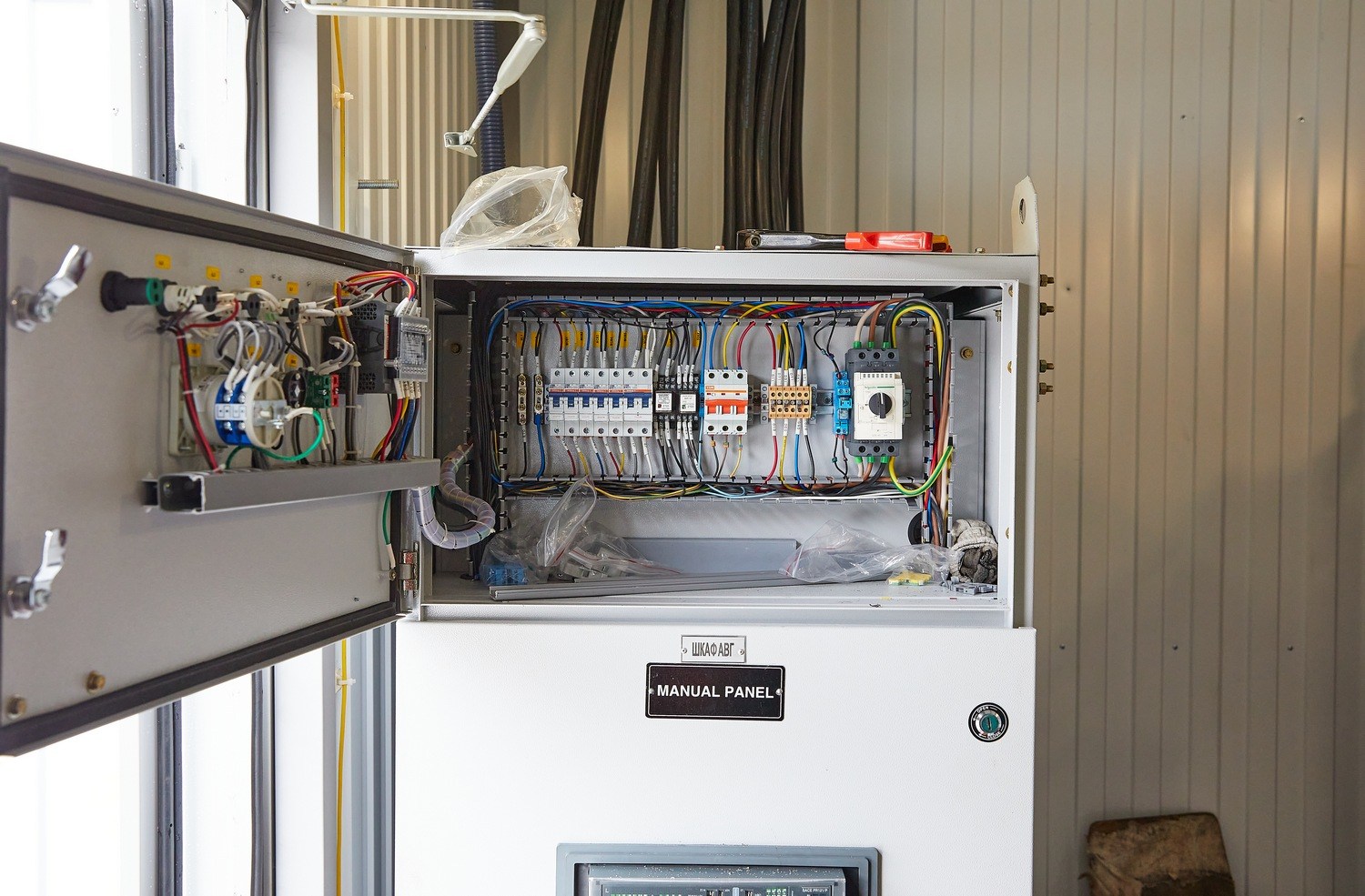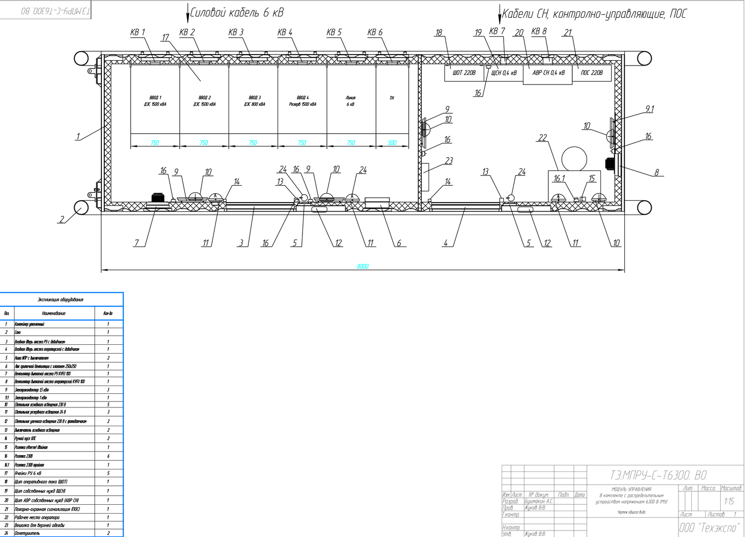 Модуль управления с ЗРУ необходим для дистанционного останова, запуска ДГУ, управления энергокомплесом, распределения и коммутации электроэнергии от ДГУ к БУ. Блок-контейнер модуля управления разделен перегородкой на два помещения: помещение РУ-6,3 кВ и помещение оператора.