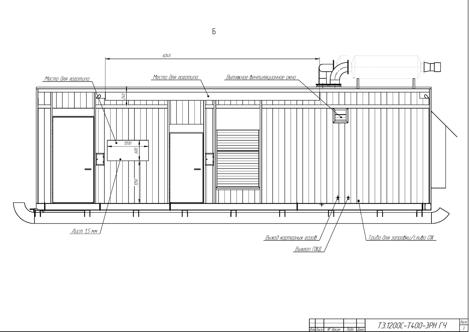 На расходном баке смонтирована мерная трубка для визуального контроля уровня масла в нем, заправочная горловина. Для отвода паров масла наружу блок-контейнера предусмотрена вентиляция картера дизеля с конденсатосборником, расположенным внутри помещения блок-контейнера. Конденсатосборник расположен ниже уровня вентиляционного отверстия в картере двигателя. Для отвода воздуха и паров масла наружу контейнера предусмотрена вентиляция масляного бака.