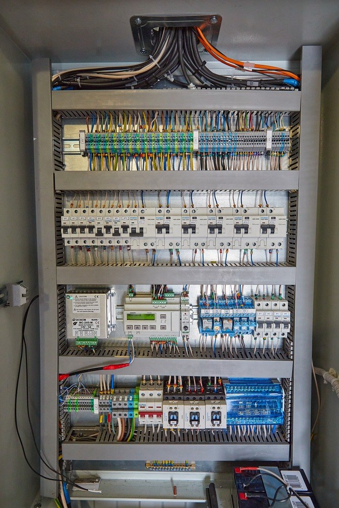 Электропитание приборов пожарной безопасности предусмотрено от отдельных автоматических выключателей, резервное электропитание - от собственных аккумуляторных батарей.