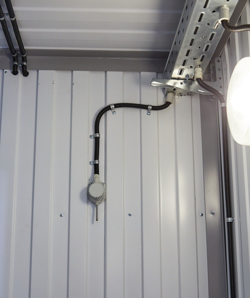 Включение и отключение светильников рабочего освещения осуществляется в автоматическом и ручном режимах с выключателей, установленных у дверей внутри блок-контейнера. При автоматической работе освещения внутреннее освещение включается в случае присутствия людей в помещении; наружное освещение включается при наступлении темноты. Питание рабочего освещения - через автоматические выключатели дифференциальные с уставкой тока утечки 30 мА.