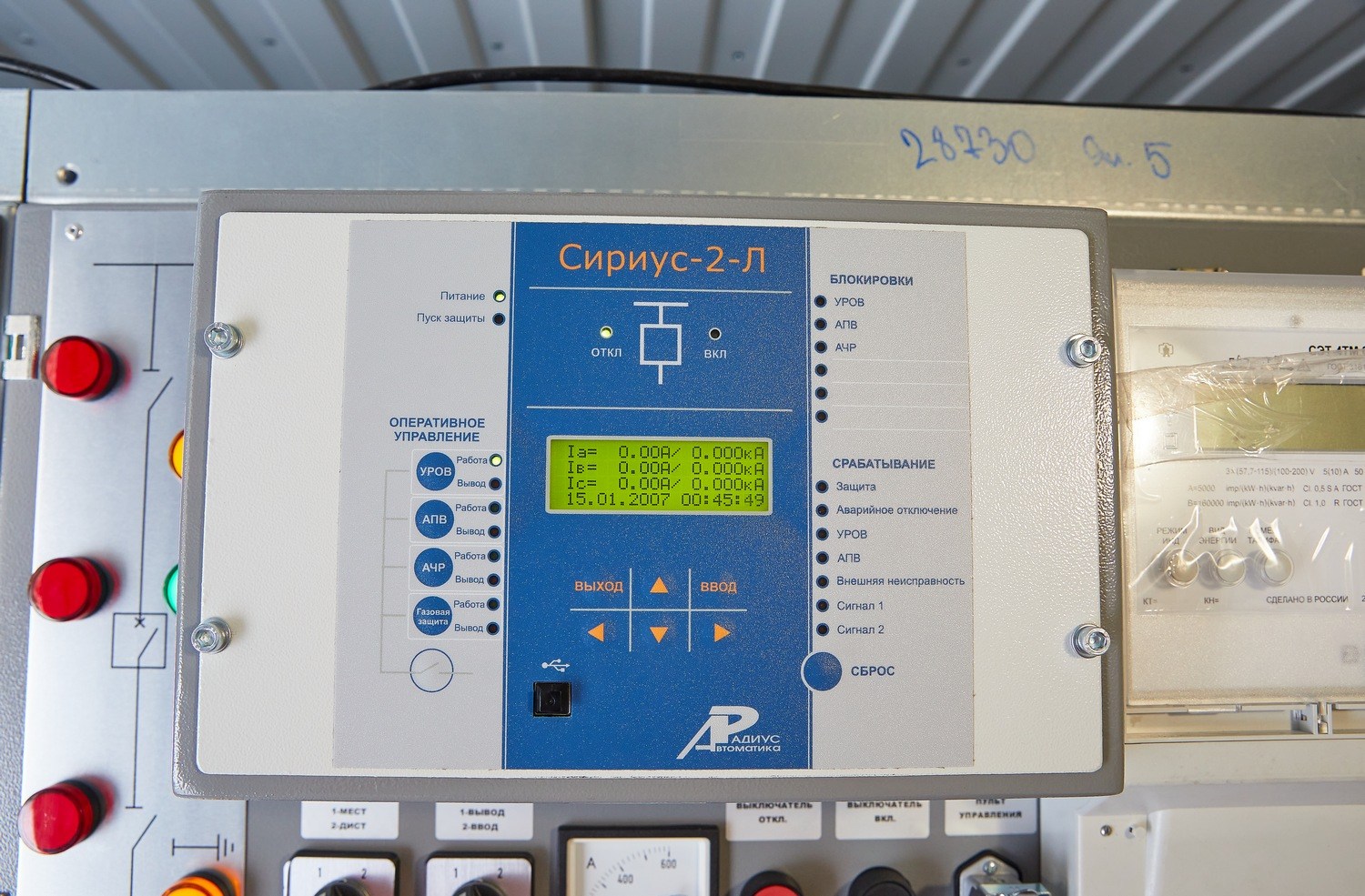 обеспечение функций защиты генератора: при низком / высоком напряжении; при низкой / высокой частоте тока; при перегрузке генератора по току; при перегрузке генератора по мощности; при перекосе напряжений и токов по фазам; при некорректном чередовании фаз; - при коротком замыкании; от перехода генератора в двигательный режим; при потере возбуждения генератора; отдельная кнопка экстренного останова ДГУ.