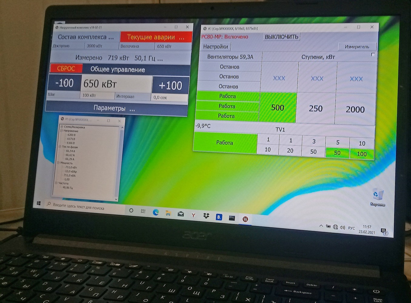 параметры генератора: напряжение между фазами, между каждой фазой и нейтралью, частота, сила тока по каждой фазе; суммарная активная мощность (кВт); суммарная реактивная мощность (кВАр); коэффициент мощности по фазам (cos φ); - счетчик активной и реактивной электроэнергии, потребленной от генератора (кВт*ч, кВАр*ч); счетчик запусков / остановов ДГУ.