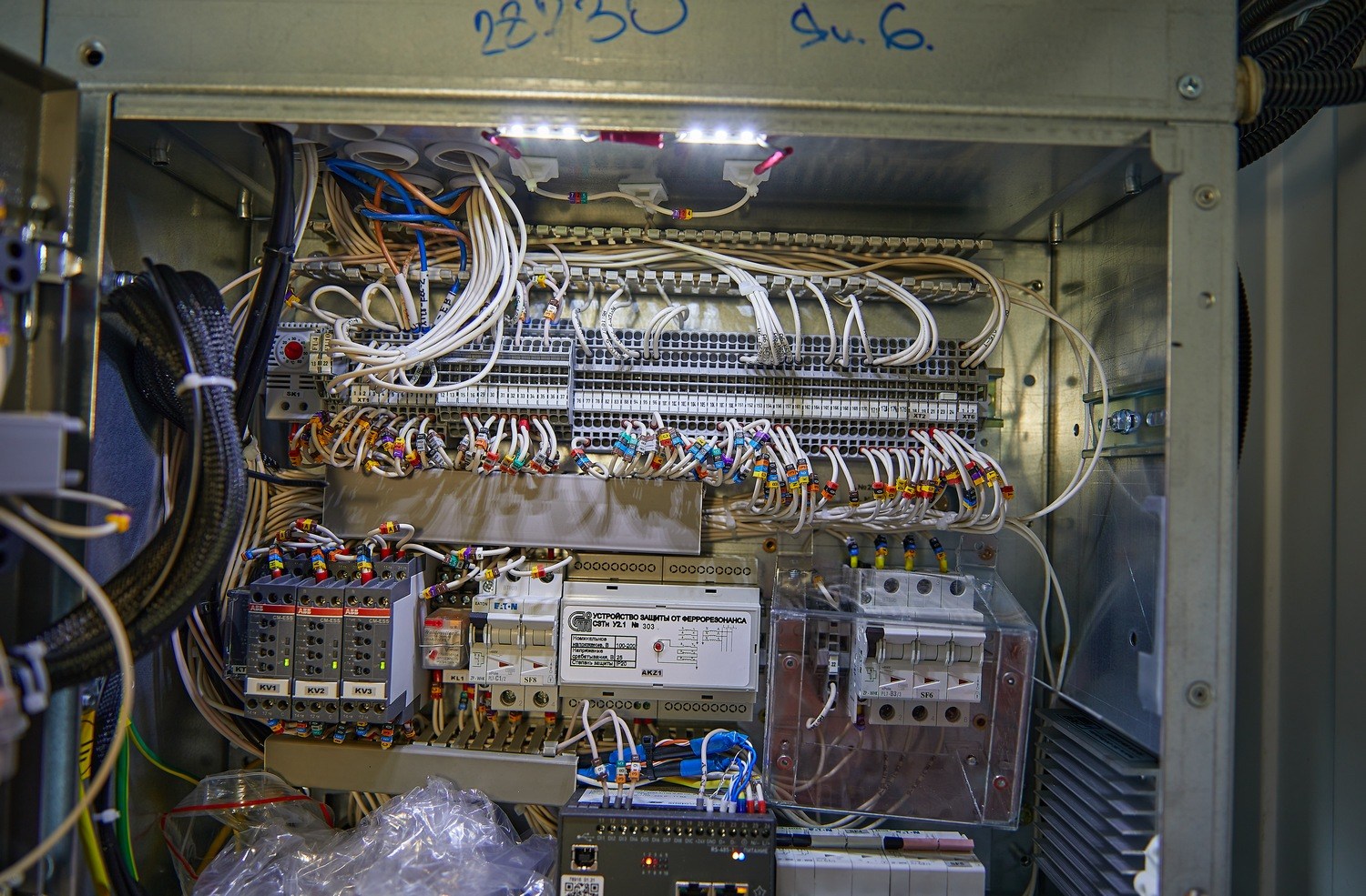 В помещении РУ-6,3 установлены высоковольтное распределительное устройство, шкаф оперативного питания, щит собственных нужд (ЩСН) .