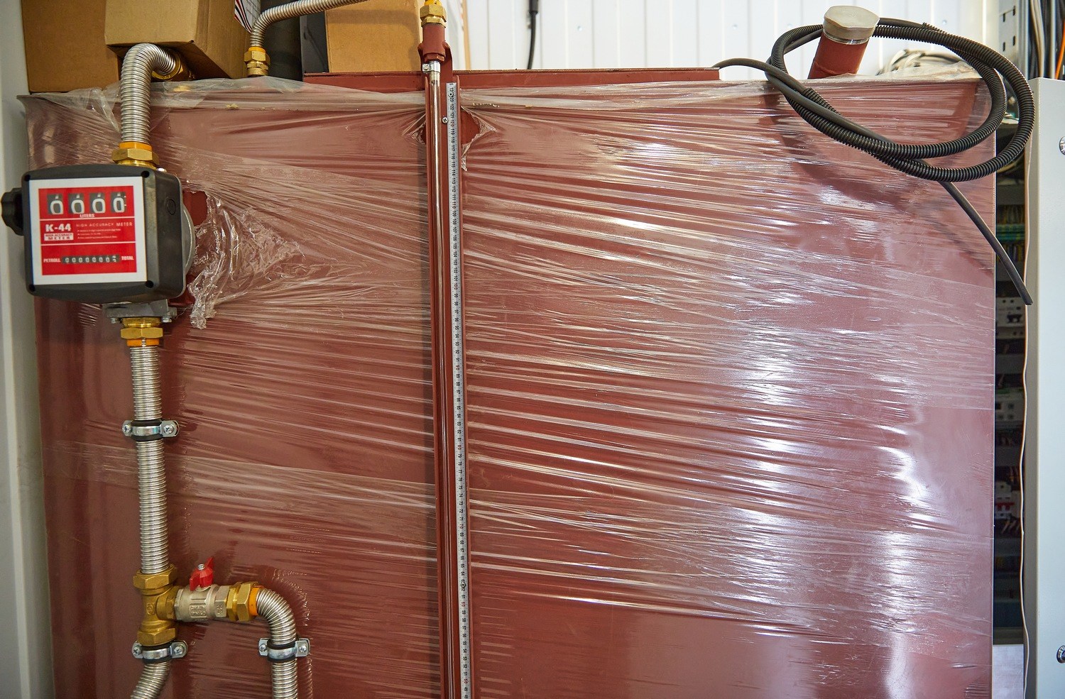 При выработке топлива в баке до нижнего уровня датчик нижнего уровня выдает сигнал в систему автоматики собственных нужд электростанции для включения электрического насоса подкачки топлива. Заполнение расходного топливного бака производится до момента срабатывания датчика верхнего уровня топлива. Для дублирования в корпус бака установлен датчик аварийно-верхнего уровня топлива, при срабатывании которого выдается сигнал на выключение электрического насоса подкачки топлива. При срабатывании датчика аварийно-нижнего уровня топлива, в систему управления собственными нуждами электростанции передается сигнал на останов ДГУ. Для отвода воздуха и паров топлива установлен трубопровод вентиляции топливного бака с огнепреградительным клапаном. В конструкции топливного бака предусмотрена возможность отстоя и слива воды.
