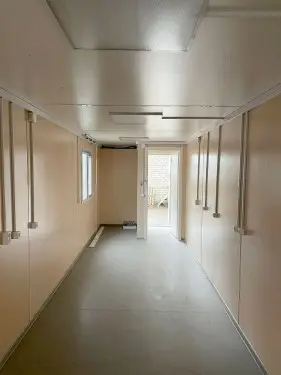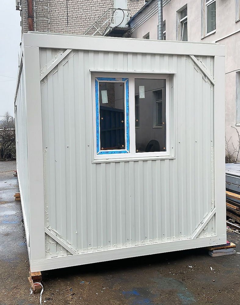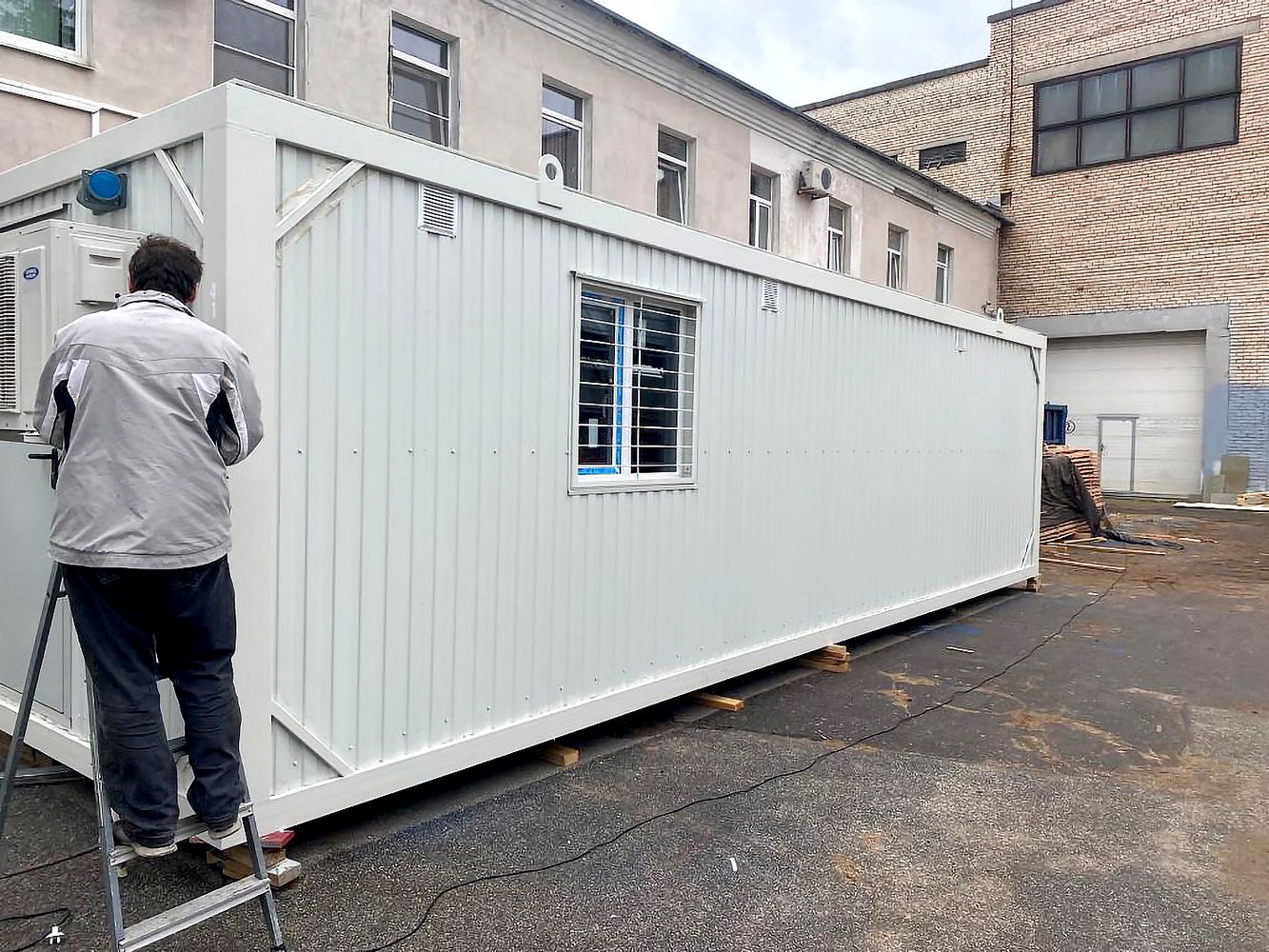 Девятиметровый цельносварной контейнер массой 6500 кг был спроектирован с учетом повышенной нагрузки из-за массы испытательного оборудования. Его габариты: 9000х2430х2590 мм. Пол и стены выполнены с гидро- и пароизоляцией и с утеплителем Rockwool 100 мм.