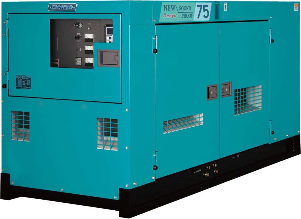 Дизельная электростанция Denyo DCA-75SPI (Япония) имеет номинальную мощность 52кВт (65 кВА), расход топлива при 100% нагрузке - 14.4 л/час. Максимальная автономия при нагрузке 75% - 14.4 ч. Масса - 1590 кг. Габариты 2630х1000х1300 мм.