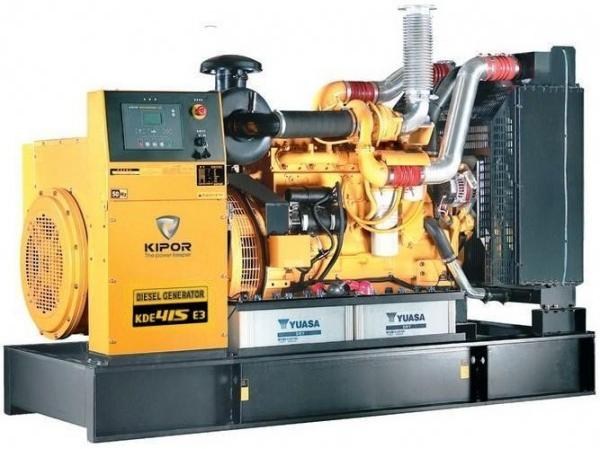 Дизельная электростанция Kipor KDE415E3 (Китай) имеет номинальную мощность 300кВт (375 кВА), расход топлива при 100% нагрузке - 86.6 л/час. Масса - 5700 кг. Габариты 2940x1380x1940 мм.