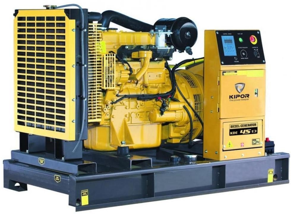 Дизельная электростанция Kipor KDE45E3 (Китай) имеет номинальную мощность 30кВт (38 кВА), расход топлива при 100% нагрузке - 10.3 л/час. Максимальная автономия при нагрузке 75% - 12.3 ч. Масса - 1470 кг. Габариты 1660x830x1160 мм.